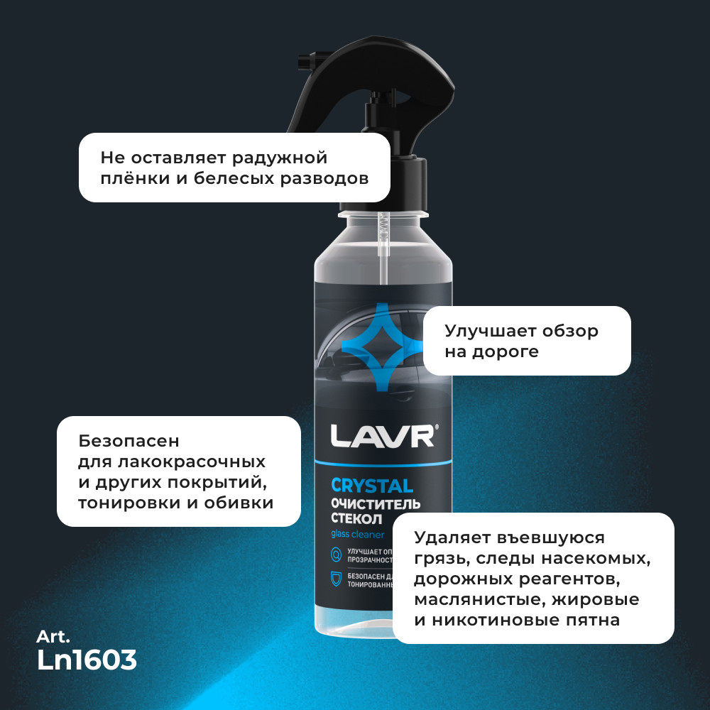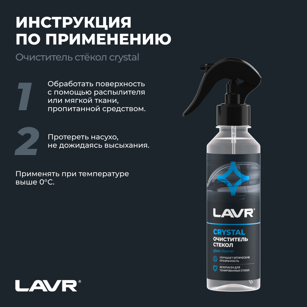 Универсальный очиститель безопасен для тонированных стекол. Улучшает оптическую видимость, не оставляет следов и разводов.