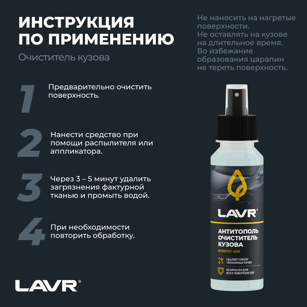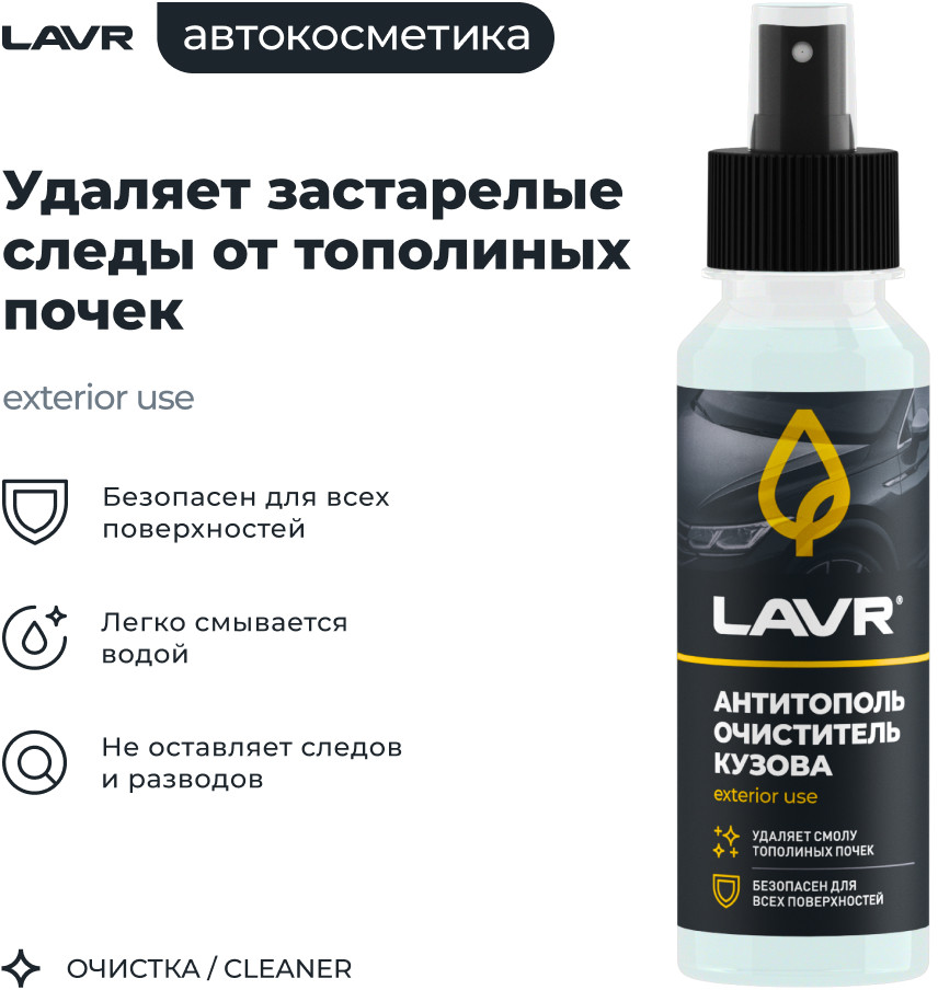 Средство для очистки поверхностей автомобиля от следов тополиных почек и других органических загрязнений.