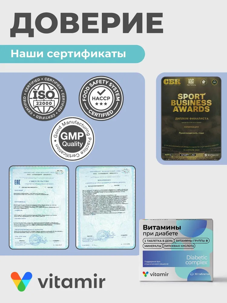 | Витамир Комплекс витаминов при диабете с селеном, хромом и фолиевой кислотой