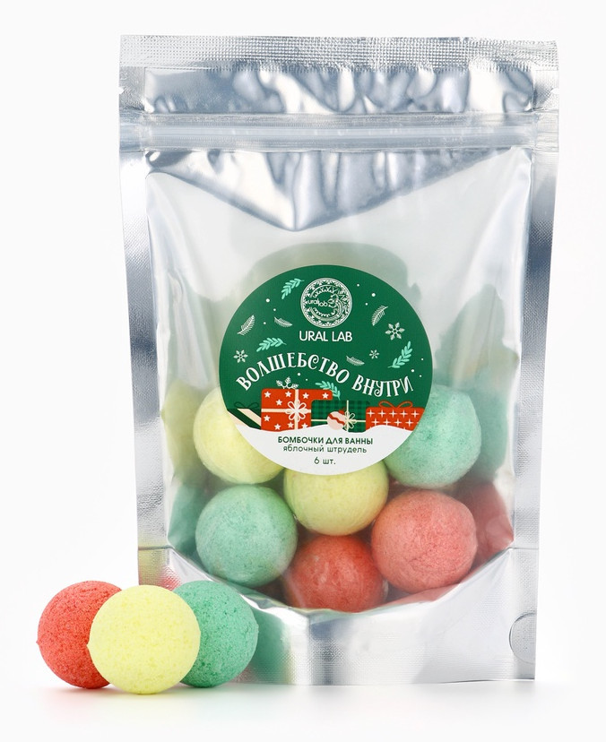 Ural lab Набор бомбочек для ванны с ароматом яблочного штруделя «Волшебство внутри»