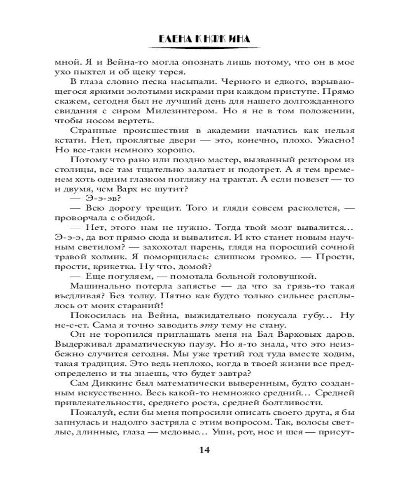 💳 Оплатить за товар можно при получении 🇰🇿 Есть бесплатная доставка по Казахстану от 1 дня 🎁 Копите бонусы с каждой покупки Серия: Волшебная академия Утром в книжной лавке хотелось его придушить. Днем в парке — скормить рою плотоядной саранчи. Ночью, в постели, от него стала зависеть моя жизнь. Если он уйдет — Тьма завладеет моим телом, а душа отправится в ее мрачные чертоги. Если останется, то потребует слишком высокую плату за свои сомнительные услуги... Наверное, не стоило нового Мастера проклятий сравнивать с филейной частью местного парнокопытного? |