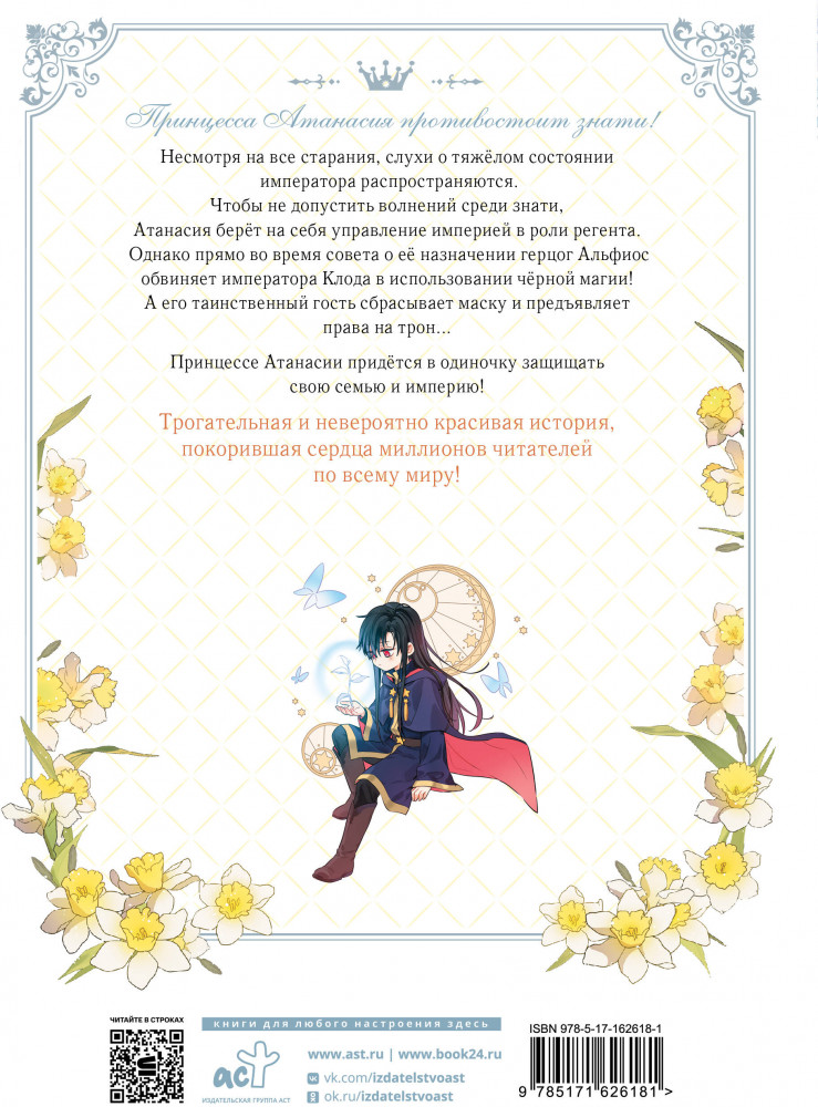 💳 Оплатить за товар можно при получении 🇰🇿 Есть бесплатная доставка по Казахстану 🎁 Копите бонусы с каждой покупки Серия: Вебтун. Однажды я стала принцессой Несмотря на все старания, слухи о тяжёлом состоянии императора распространяются. Чтобы не допустить волнений среди знати, Атанасия берёт на себя управление империей в роли регента. Однако прямо во время совета о её назначении герцог Альфиос обвиняет императора Клода в использовании чёрной магии! А его таинственный гость сбрасывает маску и предъявляет права на трон... Принцессе Атанасии придётся в одиночку защищать свою семью и империю! |