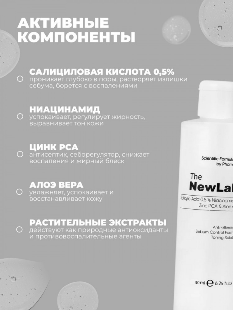 Благодаря содержанию салициловой кислоты очищающий тоник Anti-Acne Sebum Control эффективно удаляет омертвевшие клетки кожи, глубоко очищая поры и делая кожу более гладкой. Его специальная формула, содержащая ниацинамид и цинк, нормализует выработку кожного сала у жирной и склонной к акне кожи, сужает поры и предотвращает появление черных точек. Ниацинамид улучшает внешний вид кожи, снимает воспаления и выравнивает тон, а цинк контролирует выработку кожного сала. Салициловая кислота: Салициловая кислота — это бета-гидроксикислота (BHA), эффективная в лечении акне и черных точек. Ее жирорастворимая структура глубоко проникает в поры, удаляя кожное сало и омертвевшие клетки кожи. Уничтожая бактерии, вызывающие акне, и воспаление, она ускоряет заживление существующих высыпаний и предотвращает появление новых. Она также улучшает текстуру кожи, мягко отшелушивает омертвевшие клетки и выравнивает тон. Контролируя избыток кожного сала на жирной коже, салициловая кислота обеспечивает более матовый и ровный цвет лица.