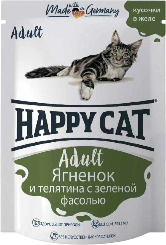 Happy cat Корм для кошек влажный «Ягнёнок, телёнок и зелёная фасоль в желе»