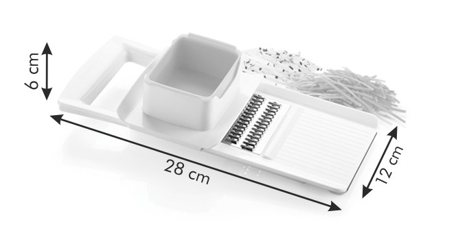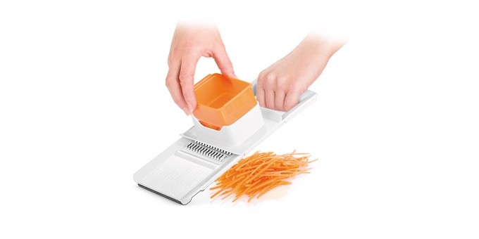 Очень разочаровала терка... Морковку не трет совсем: она или застревает, или вылетает. На вид сделано хорошо, качественно, но после первого же использования белый пластик окрасился в оранжевый цвет. Второй раз уже разочаровываюсь в фирме Tescoma. Больше ничего у них брать не буду, не хочется выкидывать деньги на ветер...
