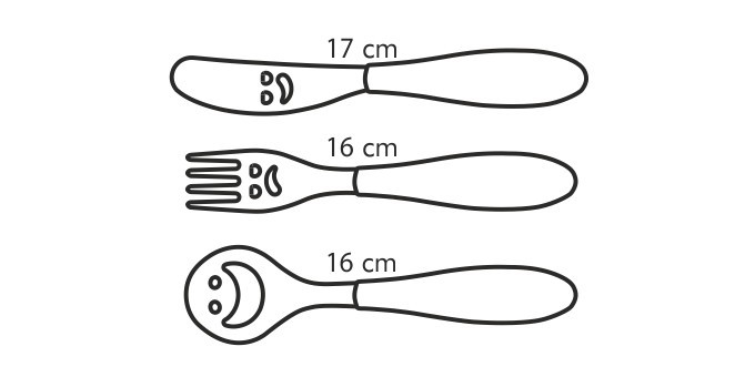Купили этот набор для сына (4 годика) качество отличное, пластик на ручках приятный, не прорезиненный, но и не скользит, сталь тоже отличная. Размер ребенку в самый раз, и дизайн забавный. Но самое главное что он в восторге, как садимся кушать достает все приборы, даже если просто чай пьем.