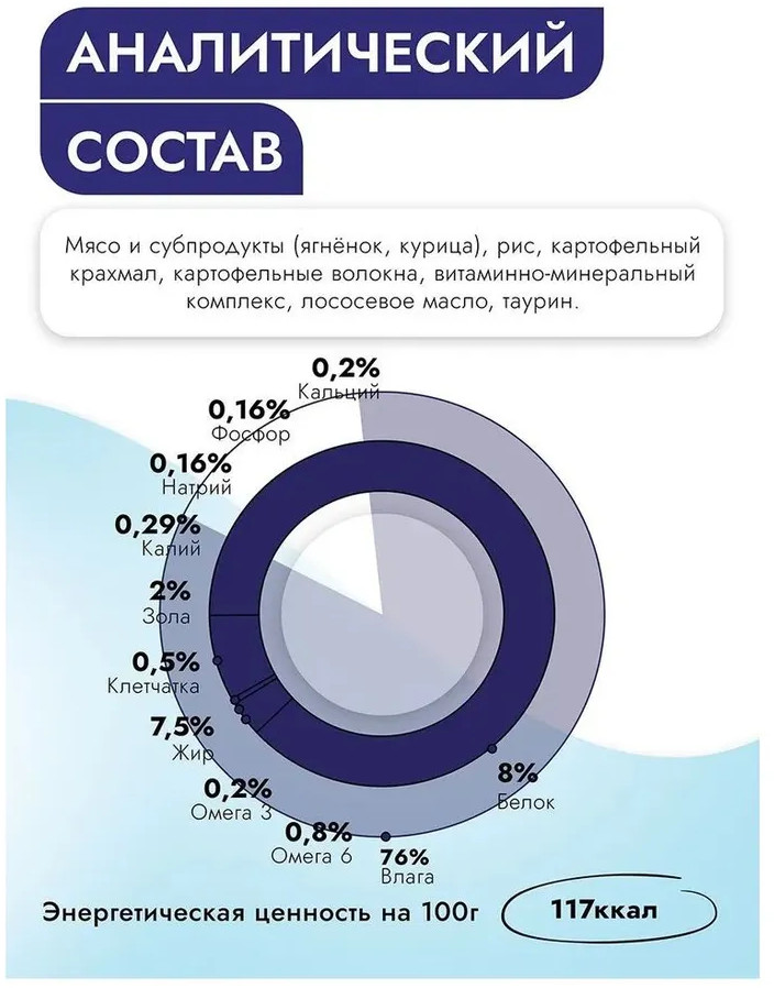 Муссовая консистенция.Удобно есть котику. И видимо, вкус ему тоже понравиося, съедает и просит еще добавки. Хотя корма с бараниной в принципе не очень любит. Но тут -дажу при открывании банки море эмоций.