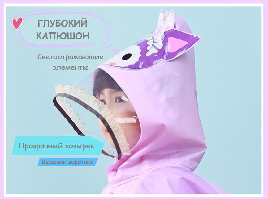 Добро пожаловать в мир комфорта и радости вместе с детским дождевиком! Детский плащ-дождевик с капюшоном и козырьком из материала EVA — это идеальное сочетание защиты, удобства и стильного дизайна, созданное специально для маленьких модниц.