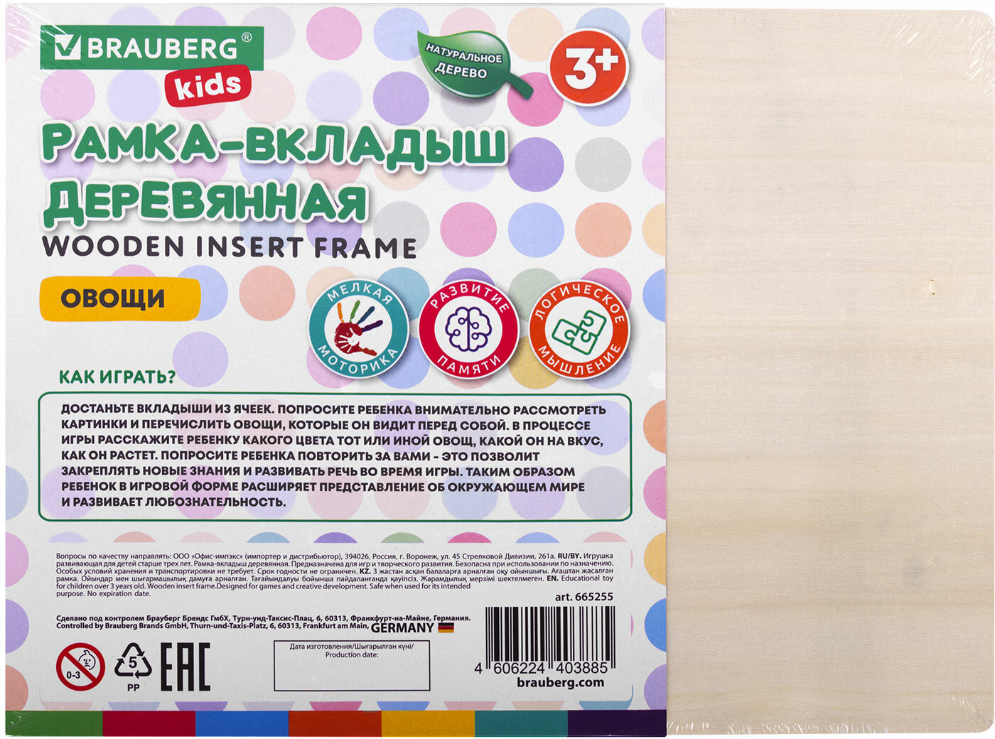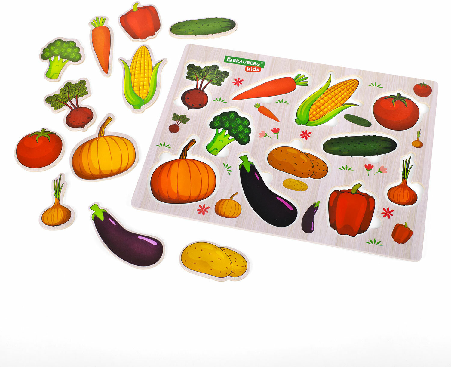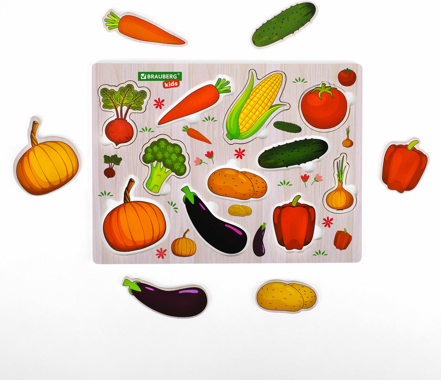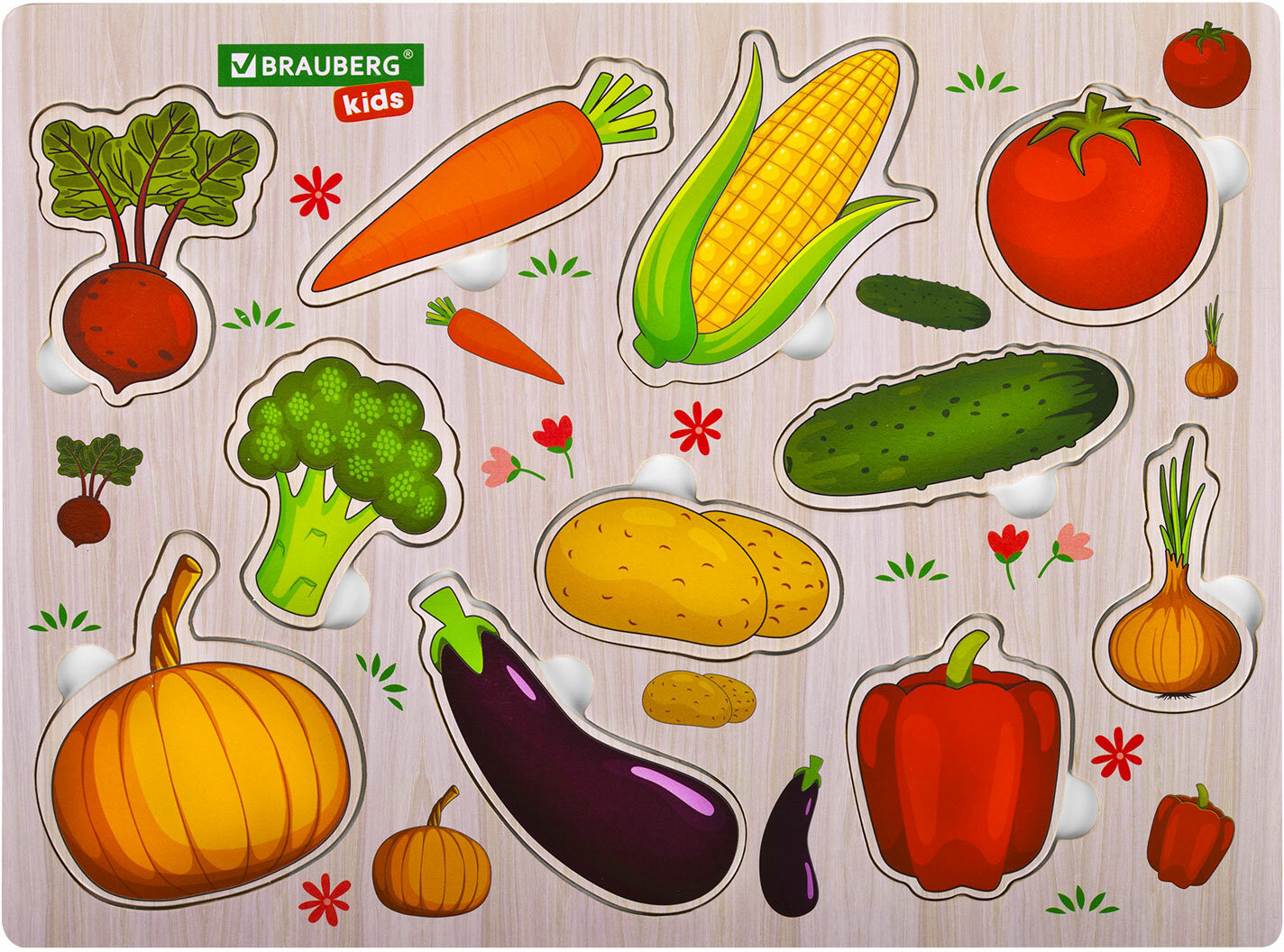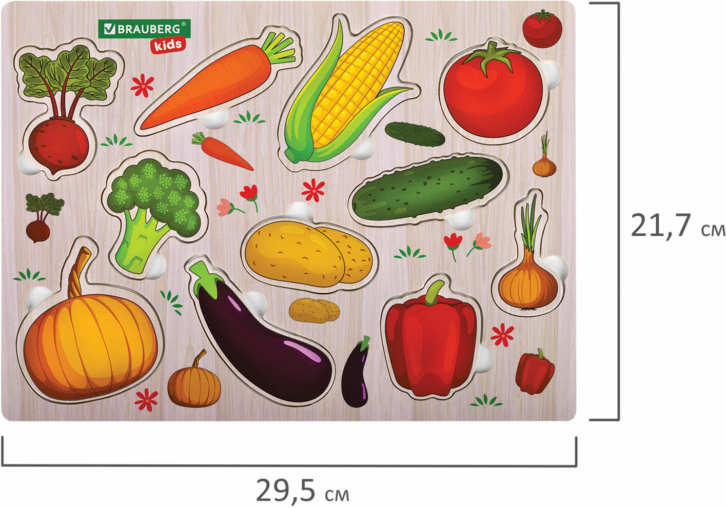 Инструкция по применению: достаньте вкладыши из ячеек и разложите их на столе. Попросите ребенка внимательно рассмотреть картинки и перечислить овощи, которые он видит перед собой. Помогите малышу, если он затрудняется с ответом. В процессе игры спрашивайте у ребенка, какого цвета тот или иной овощ, какой формы, какой он на вкус, в приготовлении каких блюд он используется. Спросите у малыша, какие овощи он уже знает. Произносите вслух названия овощей, их цвет — это позволит ребенку закрепить новые знания во время игры. Игры с рамкой-вкладышем также позволят развить речь ребенка. Рамки-вкладыши подходят как для развивающих занятий с мамой, так и для самостоятельной игры.