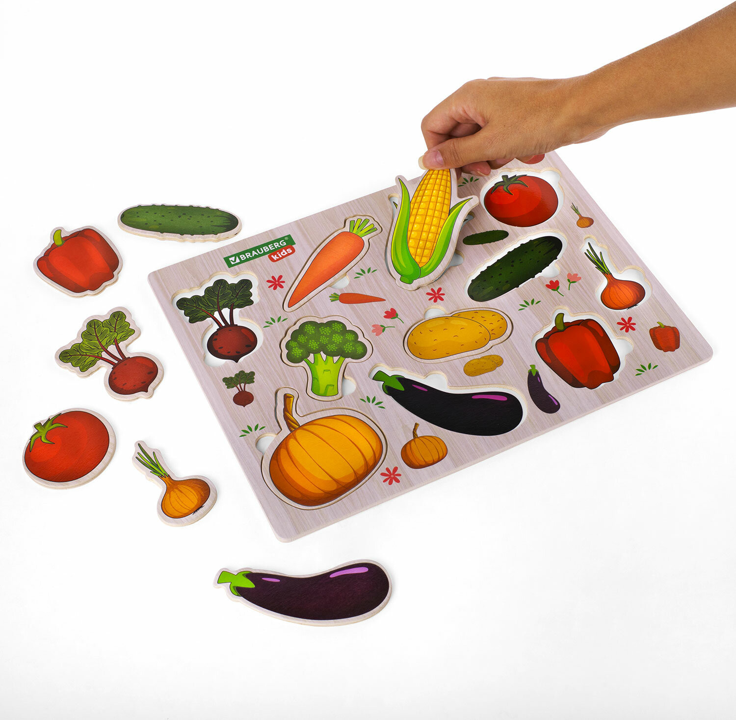 Натуральные материалы игры безопасны для ребенка. На игрушку нанесена нетоксичная краска, отсутствуют острые края и углы блоках. Каждая деталь игрушки, тщательно обработанная и украшенная, представляет собой не только инструмент для обучения, но и безопасный и прочный игровой элемент. Процесс игры сопровождается произнесением названий овощей, способствуя быстрому запоминанию и расширению словарного запаса малыша. В ходе игры малыш развивает мелкую моторику, логику и мышление. Ребенок научится соотносить формы, изучит виды овощей.