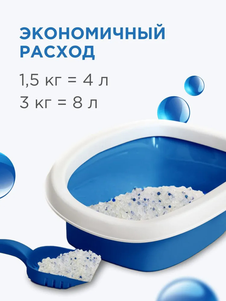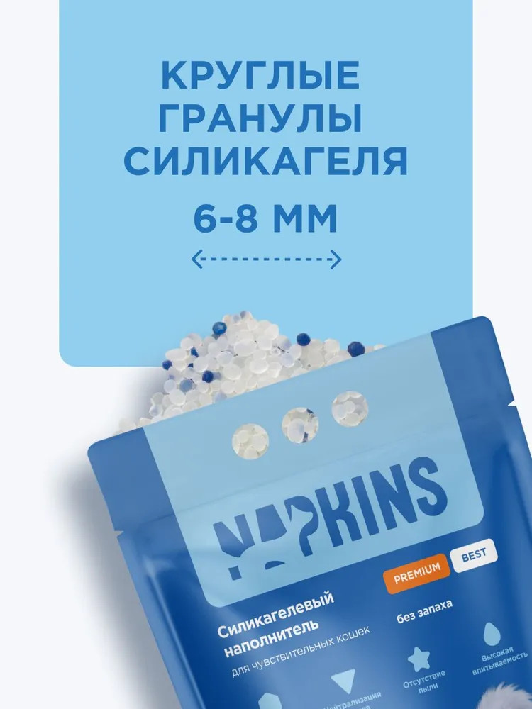 Круглые гранулы силикагеля не только обеспечивают хорошую впитываемость за счёт большой площади поверхности, но и позволяет обеспечить комфорт Вашего любимца, не прилипая к нежным лапкам. Силикагелевый наполнитель изготовлен из безопасных материалов: силиката натрия и минеральных кислот. Подходит для чувствительных кошек.