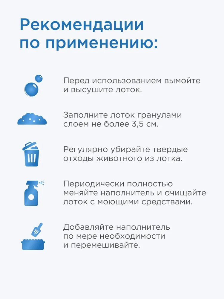 • не выбрасывайте использованный наполнитель канализацию. Утилизируйте как бытовые отходы;