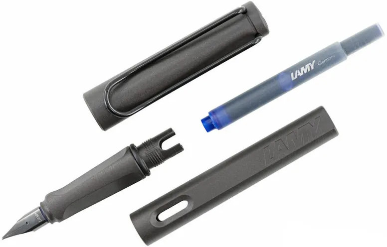 💳 Оплатить за товар можно при получении 🇰🇿 Есть бесплатная доставка по Казахстану от 1 дня 🎁 Копите бонусы с каждой покупки Самая популярная ручка бренда LAMY создана в 1980 году в коллаборации с дизайнерами и психологами специально для подростков, благодаря удобству и надежности, стала очень популярна у людей разных возрастных категорий и профессий. LAMY Safari хорошо показала себя в деле. Ручка пишет практически без нажима, ее эргономика такова, что рука не устает даже от долгого письма. Сейчас этими ручками пишут и рисуют, а также их коллекционируют — помимо широкой гаммы постоянных цветов, каждый год выходит лимитированный выпуск ручек в самом модном цвете. Корпус сделан из прочного ABS пластика. Эргономичный хват, позволяющий пальцам принять правильное положение при письме. Металлический клип на колпачке напоминает по форме канцелярскую скрепку. Окошко на корпусе позволяет контролировать расход чернил. Стальное, черное, заменяемое перо EF. Перьевая ручка используется с чернильными картриджами LAMY T10 или с конвертером LAMY Z28 для заправки чернилами из флакона LAMY T51, LAMY T52 и/или LAMY T53 (Crystal Ink). Комплектация: подарочная коробка, чернильный картридж синего цвета LAMY T10, инструкция. |