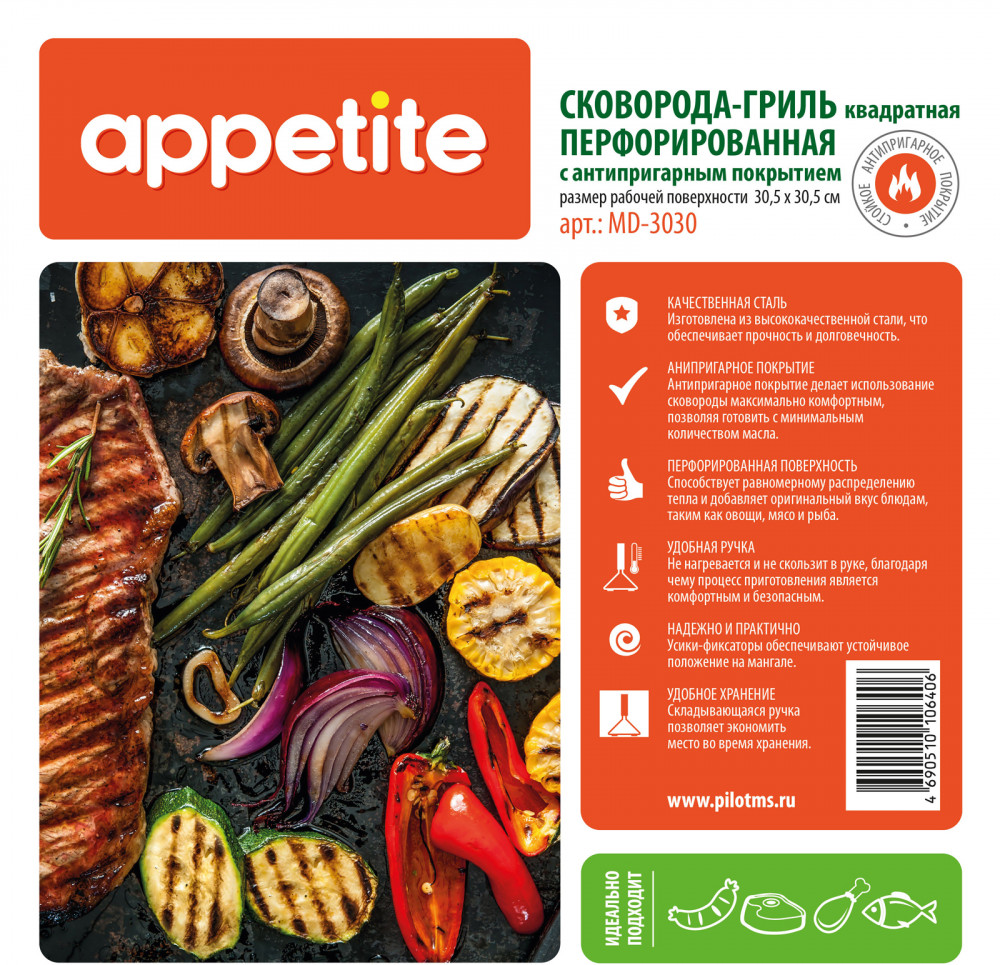 Appetite Сковорода-гриль перфорированная+286