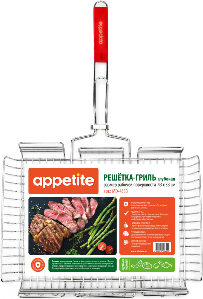 💳 Оплатить за товар можно при получении 🇰🇿 Есть бесплатная доставка по Казахстану от 1 дня 🎁 Копите бонусы с каждой покупки Глубокая решётка-гриль от бренда Appetite — незаменимый помощник для приготовления вкусных и сочных блюд на гриле. Она изготовлена из хромированной стали, которая обеспечивает долговечность и устойчивость к коррозии. Деревянная ручка решётки-гриль кастомизирована и обеспечивает удобный хват. Благодаря своей глубине, решётка идеально подходит для приготовления больших кусков мяса, овощей и других продуктов. |