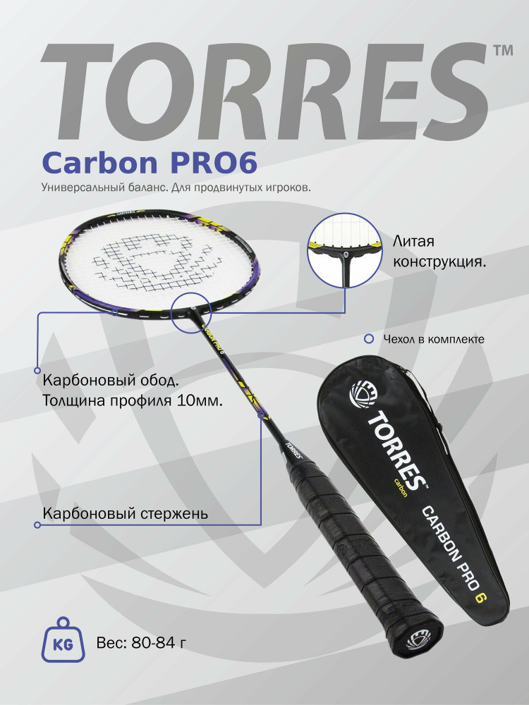 TORRES Ракетка для бадминтона «Carbon PRO6»+933