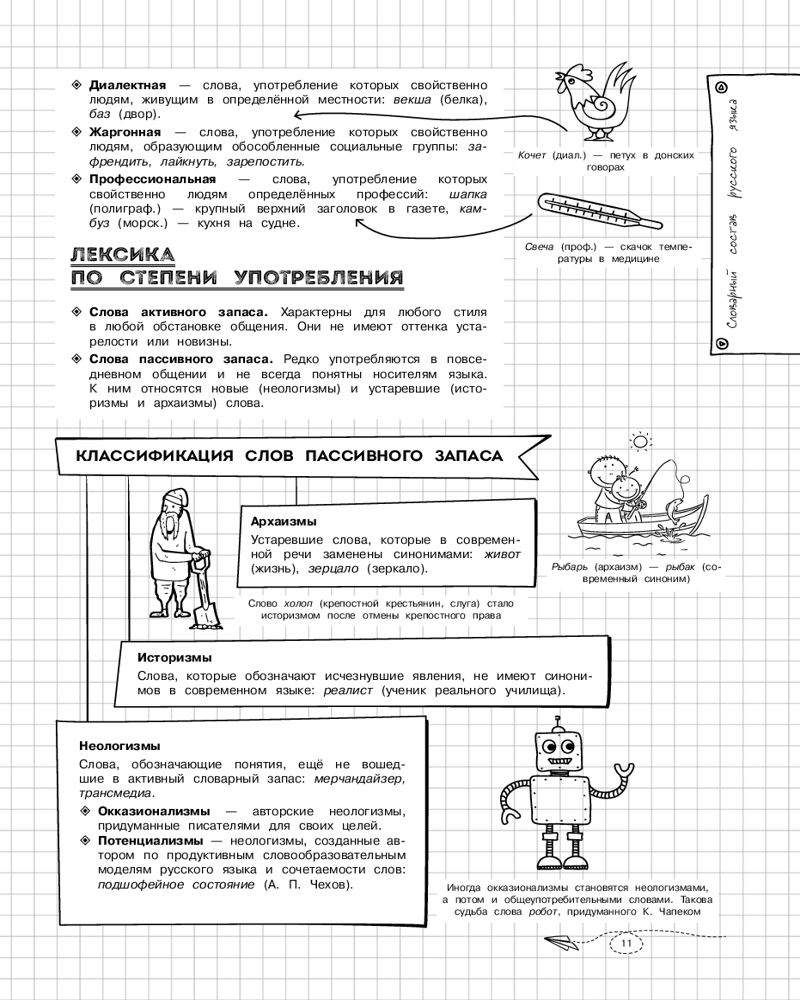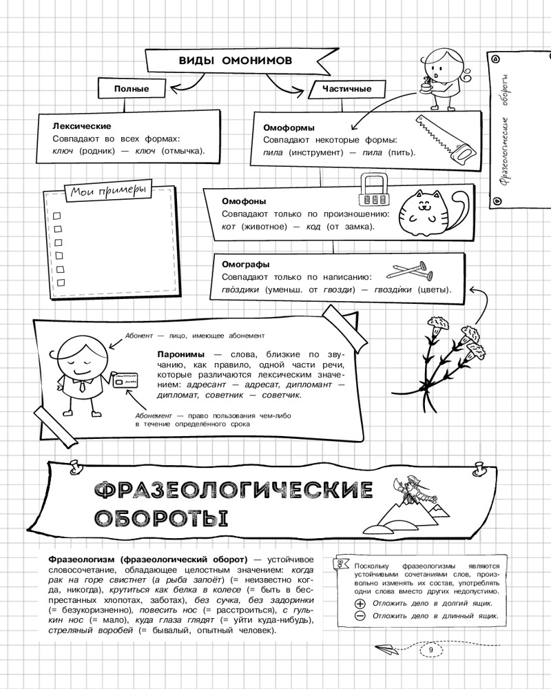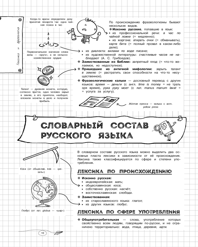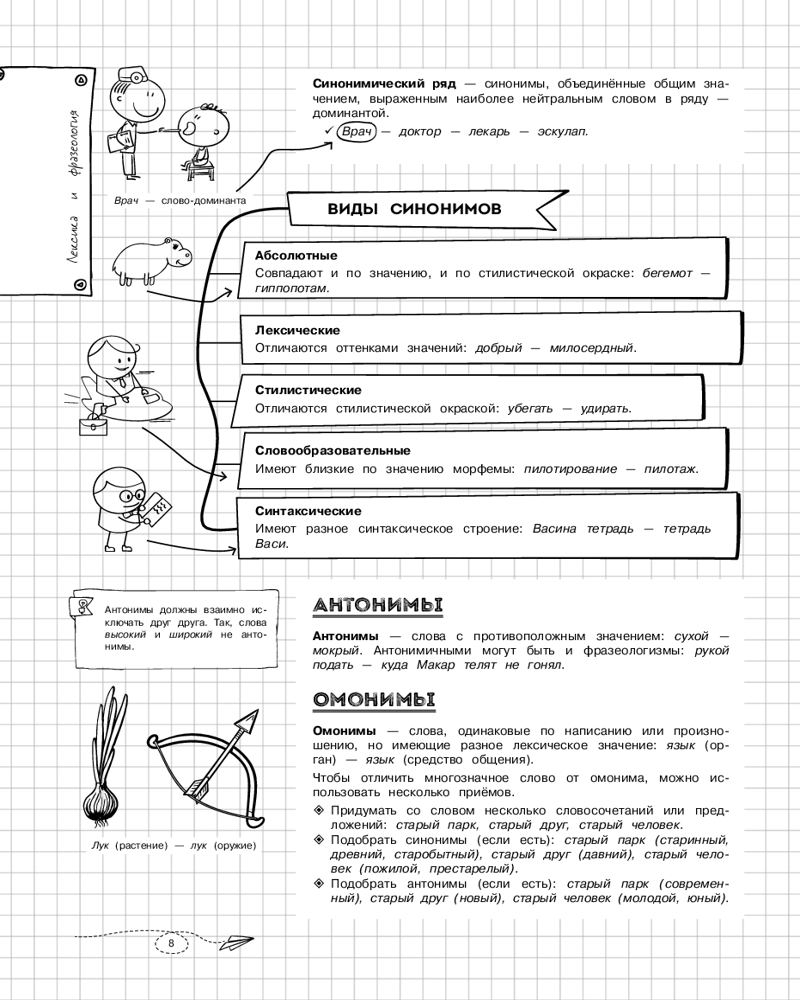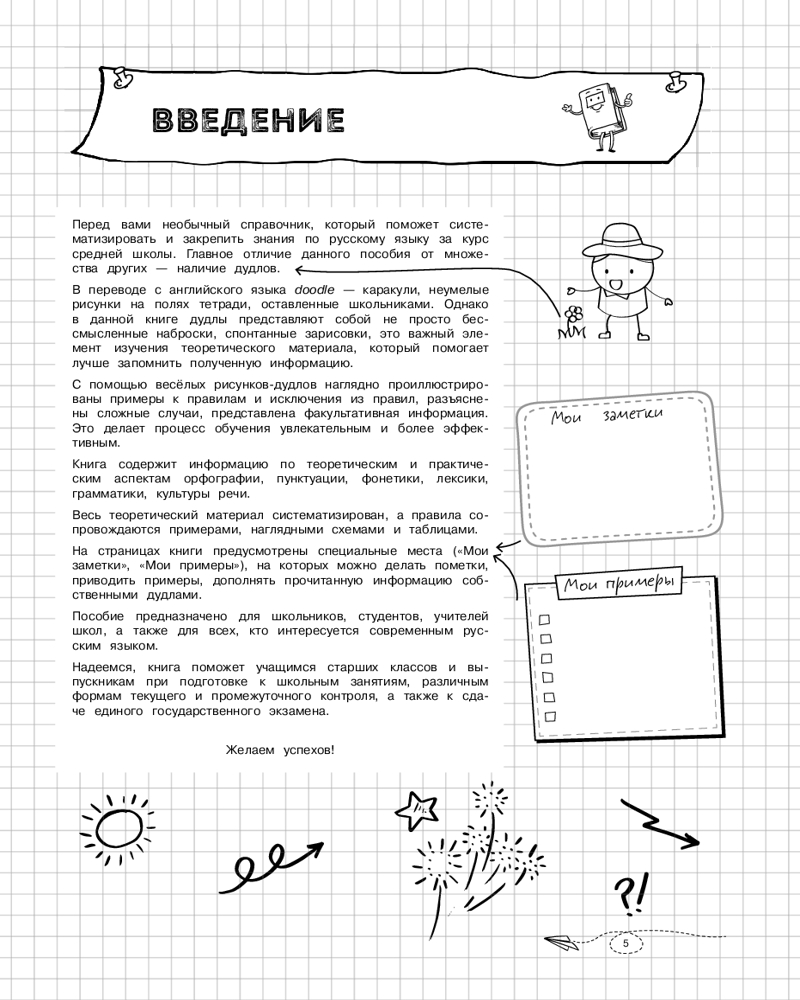 💳 Оплатить за товар можно при получении 🇰🇿 Есть бесплатная доставка по Казахстану от 1 дня 🎁 Копите бонусы с каждой покупки Серия: Классный справочник школьника в наглядных конспектах Справочник по русскому языку в наглядных конспектах для учеников 5, 6, 7, 8, 9, 10 и 11 классов превращает изучение каждой темы в увлекательное и познавательное приключение! Книга поможет запоминать и повторять материал на протяжении всего школьного курса. Благодаря наглядной подаче теории с примерами, схемами, а также забавными рисунками, текст становится доступным и интересным. Визуальный подход обеспечивает легкость восприятия и запоминания информации, ведь она оформлена в виде конспектов, словно ученик писал их сам. Всевозможные иллюстрации и места для собственных примеров и примечаний помогут сделать процесс обучения максимально простым и приятным! А при желании можно взять маркеры и сделать свой конспект еще более уникальным и персонализированным! |