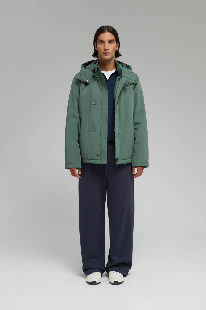 Утеплённая куртка из прочной плащевой ткани с несъёмным капюшоном и застёжкой на молнию с ветрозащитной планкой надёжно защищает от холода и ветра, оставаясь комфортной в переменчивую погоду. Высокотехнологичный искусственный утеплитель с множеством тончайших волокон лёгкий, гипоаллергенный и эффективно сохраняет тепло. Лёгкий подклад с антибактериальной и полиуретановой обработкой препятствует развитию микрофлоры и продлевает срок службы изделия. Лаконичный дизайн делает модель универсальной для сочетания с любыми элементами гардероба. Куртка выполнена из непрозрачного, неэластичного материала, имеет прорезные передние карманы и три внутренних кармана.