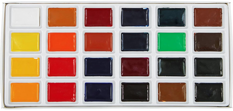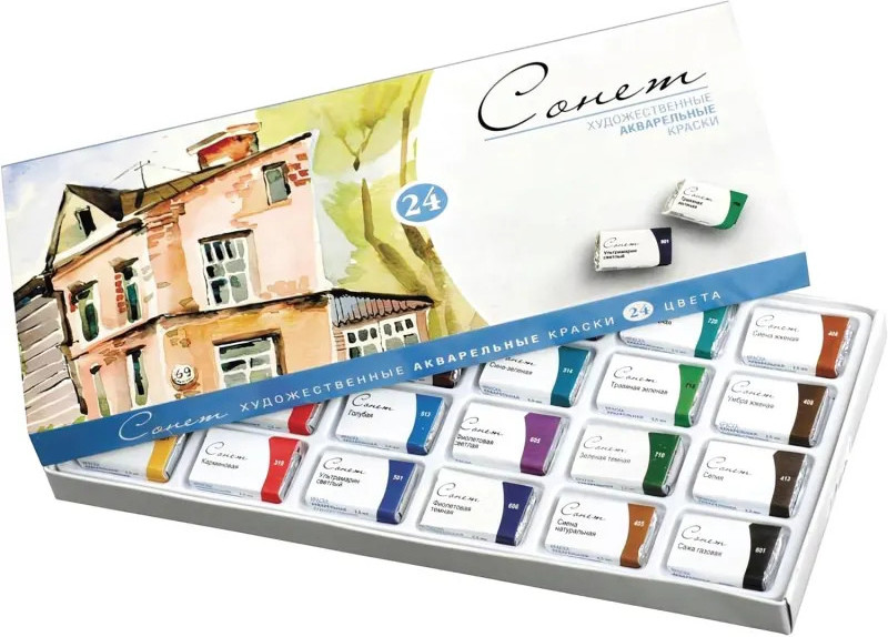 Акварельные краски — это идеальный выбор для художников любого уровня, от начинающих до профессионалов. Яркие и насыщенные пигменты легко смешиваются между собой, позволяя создавать бесконечное разнообразие оттенков и эффектов. Благодаря высокой прозрачности акварель придает работам легкость и глубину, а плавные переходы цветов делают изображения живыми и выразительными. Краски равномерно ложатся на бумагу, быстро высыхают и не выцветают со временем, сохраняя насыщенность палитры. |