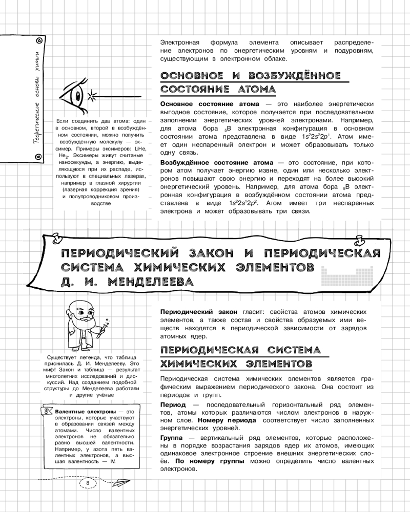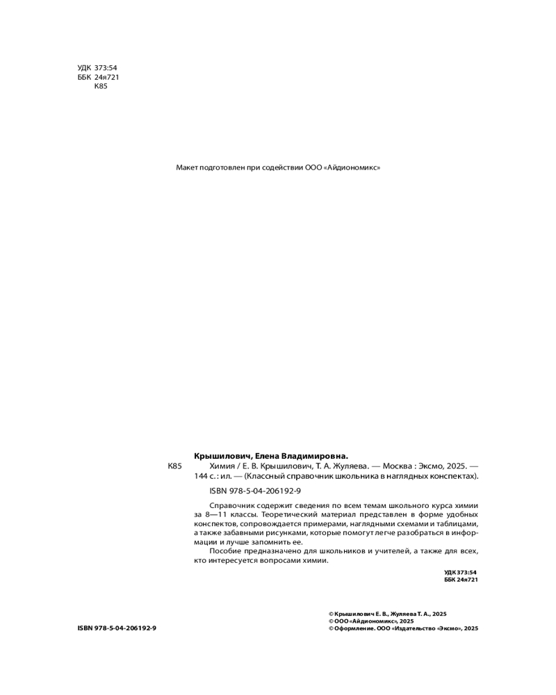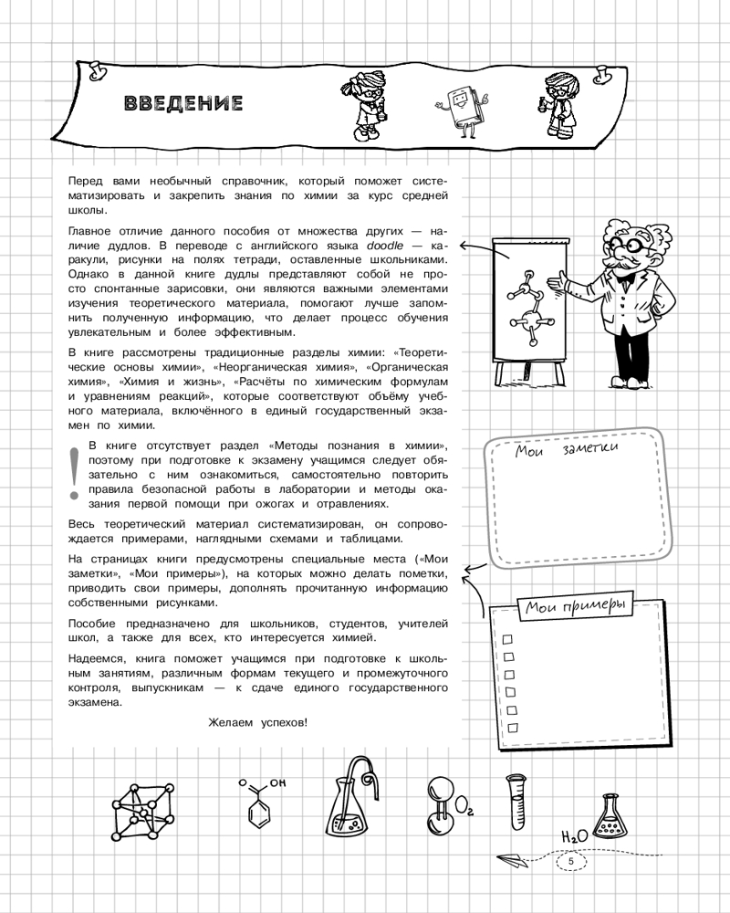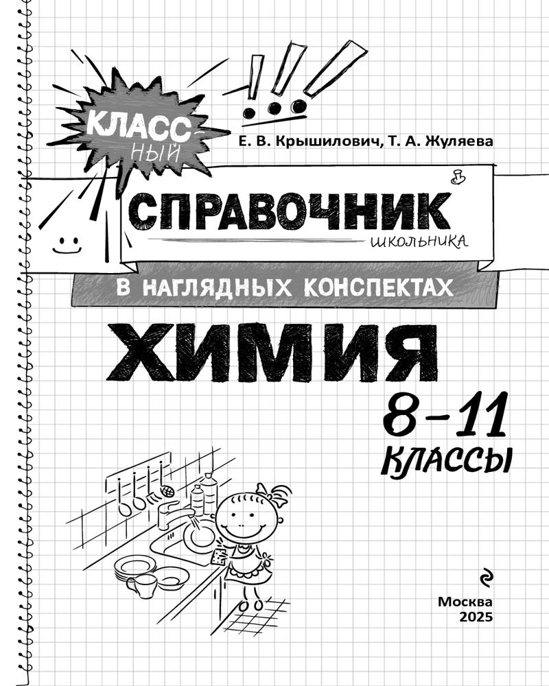 ХимияЕлена Владимировна Крышилович, Таисия Александровна Жуляева В данный момент этот товар отсутствует в продаже. Возможно, у нас найдется аналогичный или похожий товар здесь. Серия: Классный справочник школьника в наглядных конспектах Справочник по химии в наглядных конспектах для учеников 8, 9, 10 и 11 классов превращает изучение каждой темы в увлекательное и познавательное приключение! Книга поможет запоминать и повторять материал на протяжении всего школьного курса. Благодаря наглядной подаче теории с примерами, схемами, а также забавными рисунками, текст становится доступным и интересным. Визуальный подход обеспечивает легкость восприятия и запоминания информации, ведь она оформлена в виде конспектов, словно ученик писал их сам. Всевозможные иллюстрации и места для собственных примеров и примечаний помогут сделать процесс обучения максимально простым и приятным! А при желании можно взять маркеры и сделать свой конспект еще более уникальным и персонализированным! |