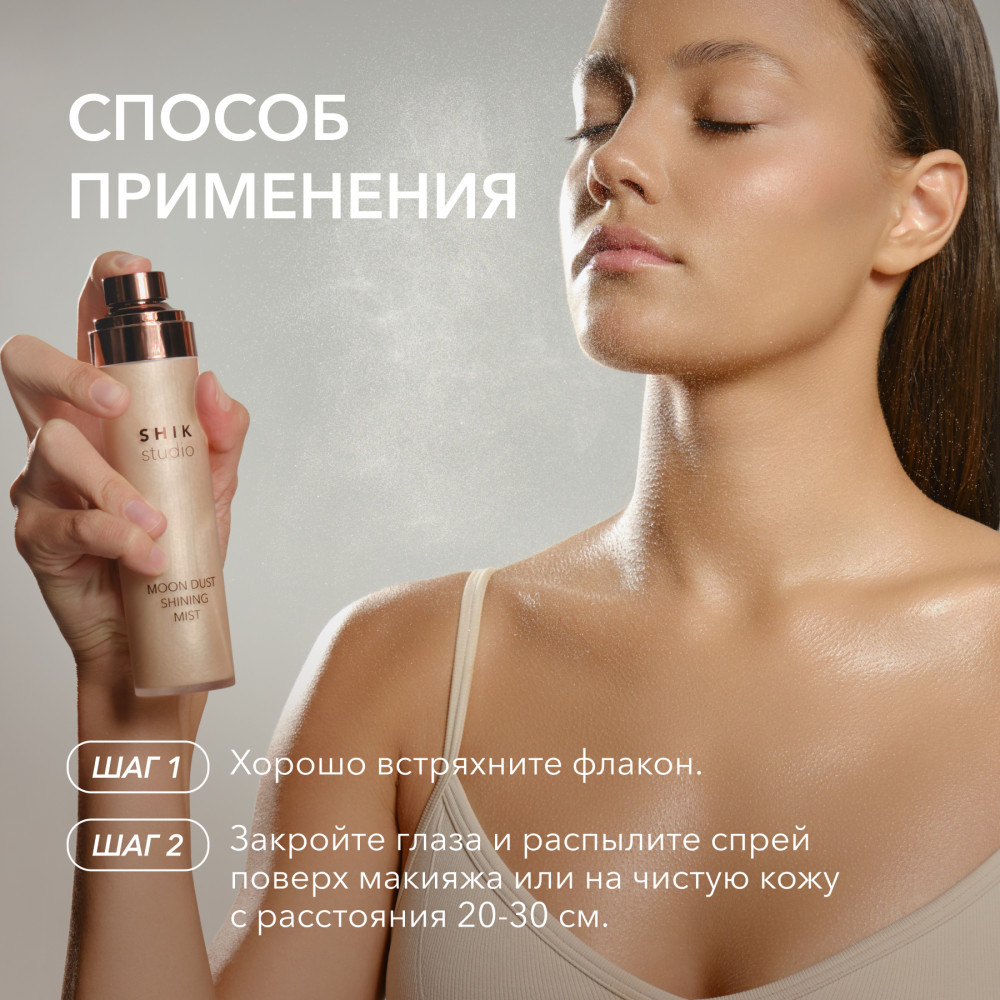 SHIK Спрей для лица и тела сияющий «Moon Dust Shining Mist»В данный момент этот товар отсутствует в продаже. Возможно, у нас найдется аналогичный или похожий товар здесь. Неповторимое сочетание красивого бронзового свечения и увлажняющих свойств. Мельчайшие перламутровые частицы красиво отражают и преломляют свет, придавая атласное сияние. Невесомая текстура сияющего спрея тонко обволакивает кожу, не оставляя липкого слоя. Благодаря мелкодисперсному распылителю продукт воздушно и однородно наносится на все лицо и тело. Сияющий спрей идеально подходит для использования в качестве основы под макияж, иллюминайзера и фиксатора. |
