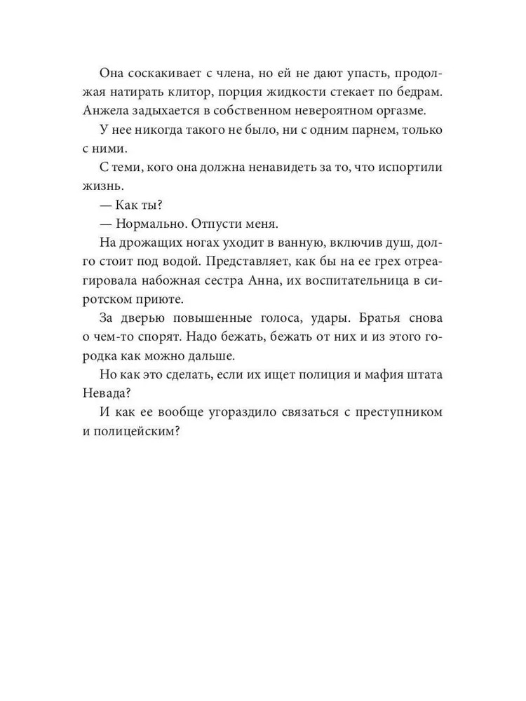 💳 Оплатить за товар можно при получении 🇰🇿 Есть бесплатная доставка по Казахстану от 1 дня 🎁 Копите бонусы с каждой покупки Серия: Жаркий Техас Рик и Даг, близнецы. Разные, опасные, нежные и страстные. Термоядерная смесь — полицейский и бандит. А между ними — дикий ангелочек Анжела. Выберет ли она одного или сгорит от страсти в объятиях обоих? И сможет ли кто-то из братьев отказаться от неё? |