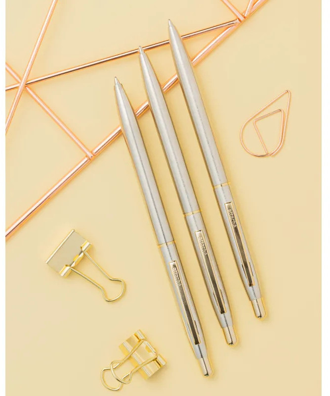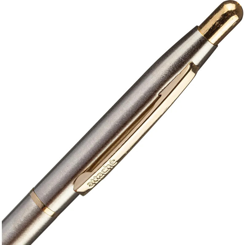 💳 Оплатить за товар можно при получении 🇰🇿 Есть бесплатная доставка по Казахстану от 1 дня 🎁 Копите бонусы с каждой покупки Автоматическая шариковая ручка Attache 4007CN — это стильная и удобная ручка с механизмом нажимного действия. Модель имеет латунный корпус серого цвета. Стильный дизайн ручки дополняет металлическая клипса, позволяющая плотно закрепить ручку в кармане или тетради для записей. Декоративные элементы выполнены с использованием хромированного покрытия. Сменный стержень длиной 98.5 мм снабжен стандартным наконечником и заправлен пастой синего цвета. Диаметр пишущего узла 1 мм создает тонкую линию письма, равную 0.7 мм. Тип нанесения, который возможен на данную модель: тампопечать, лазерная гравировка. Страна производства — Индия. Автоматическая шариковая ручка Attache 4007CN — это уникальное сочетание стиля, надежности и удобства! |