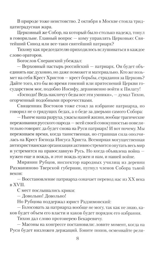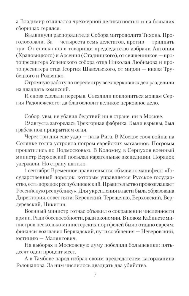 Серия: Портрет на фоне эпохи Эта книга рассказывает о патриархе Тихоне, возглавившем Русскую Православную Церковь в один из сложнейших для нее периодов — осенью 1917 года. Упраздненное при императоре Петре I патриаршество было восстановлено, но императорская власть, которая не только подчиняла, но и служила для церкви опорой, перестала существовать. Под угрозой уничтожения оказалась и сама церковная жизнь в России, а новому патриарху следовало не только принимать сложные решения, но и служить примером для множества людей, стать истинным пастырем, который поможет не потерять нравственные ориентиры в круговороте революционных событий. В книге показана деятельность Тихона на посту патриарха, а также дана авторская оценка причин его кончины, последовавшей в 1925 году.  |