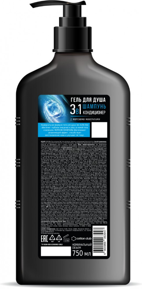 Aura Гель для душа мужской 3 в 1 «Ультра чистота»