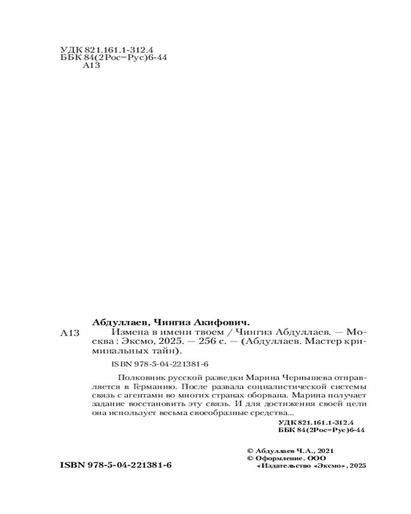 💳 Оплатить за товар можно при получении 🇰🇿 Есть бесплатная доставка по Казахстану от 1 дня 🎁 Копите бонусы с каждой покупки Серия: Абдуллаев. Мастер криминальных тайн Полковник русской разведки Марина Чернышева отправляется в Германию. После развала социалистической системы связь с агентами во многих странах оборвана. Марина получает задание восстановить эту связь. И для достижения своей цели она использует весьма своеобразные средства... |