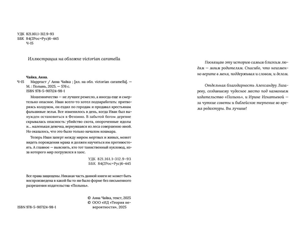 💳 Оплатить за товар можно при получении 🇰🇿 Есть бесплатная доставка по Казахстану от 1 дня 🎁 Копите бонусы с каждой покупки Мошенничество — не лучшее ремесло, а иногда еще и смертельно опасное. Иван всего-то хотел подзаработать: притворяясь колдуном, он ездил по городам и продавал крестьянам фальшивые зелья. Все изменилось в день, когда Иван был вынужден остановиться в Фензино. В забытой богом деревне скрывалась опасность: убийство скота, опороченные идолы и... маленькая девочка, вернувшаяся из леса совершенно иной. Но оказалось, что это было только началом кошмара. |