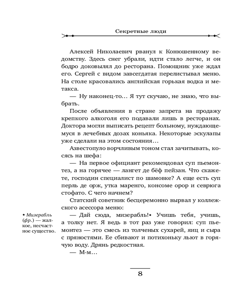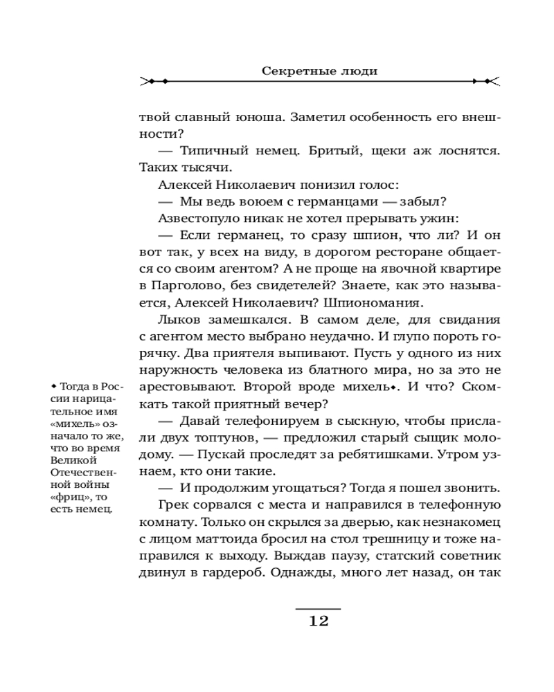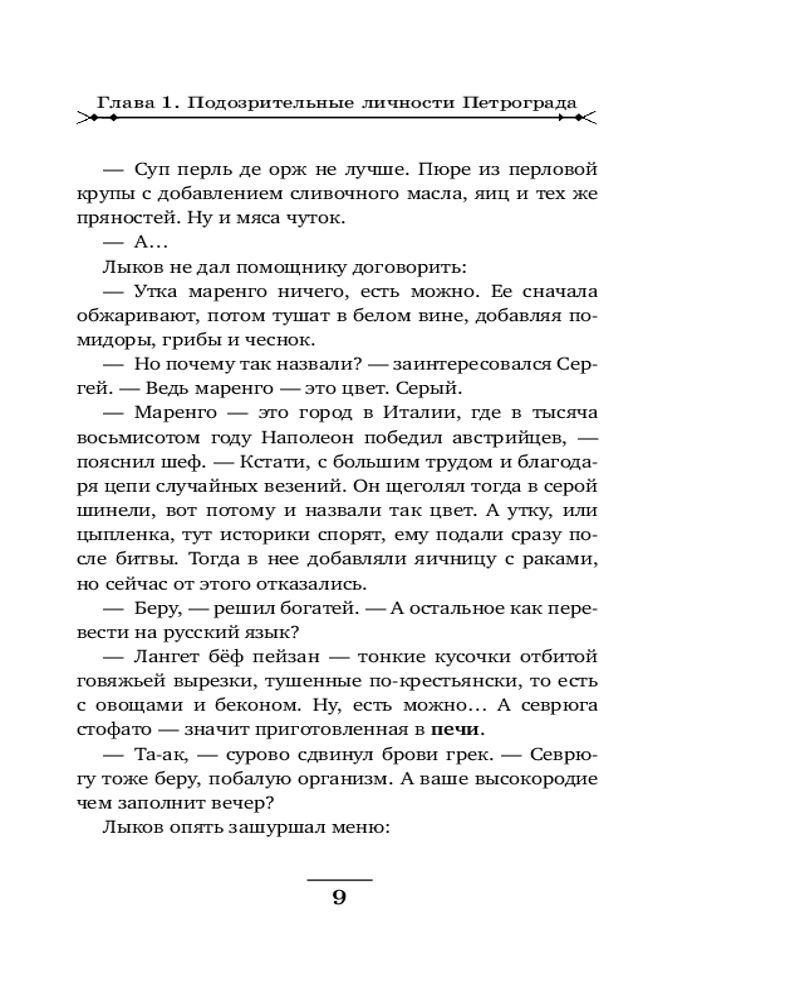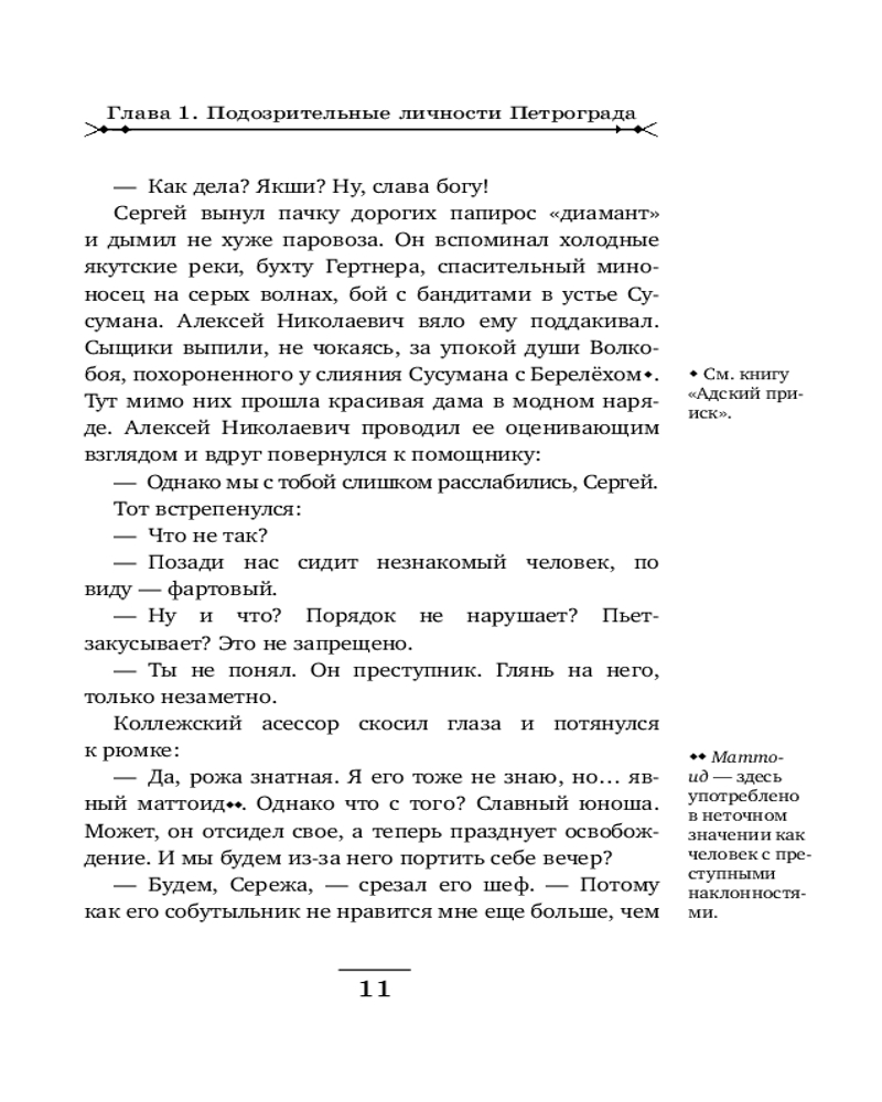 💳 Оплатить за товар можно при получении 🇰🇿 Есть бесплатная доставка по Казахстану 🎁 Копите бонусы с каждой покупки Серия: Исторические детективы Николая Свечина Рождественский Петроград. За роскошным ужином в модном ресторане сыщики Лыков и Азвестопуло обращают внимание на двух подозрительных типов, сидящих неподалеку. Один из них — молодой, по виду фартовый, с явно уголовными манерами. Второй бритый, щеки аж лоснятся — без сомнения немец. Сыщиков хоть и развезло маленько, но всё же они решают проследить за подозрительными субъектами. |