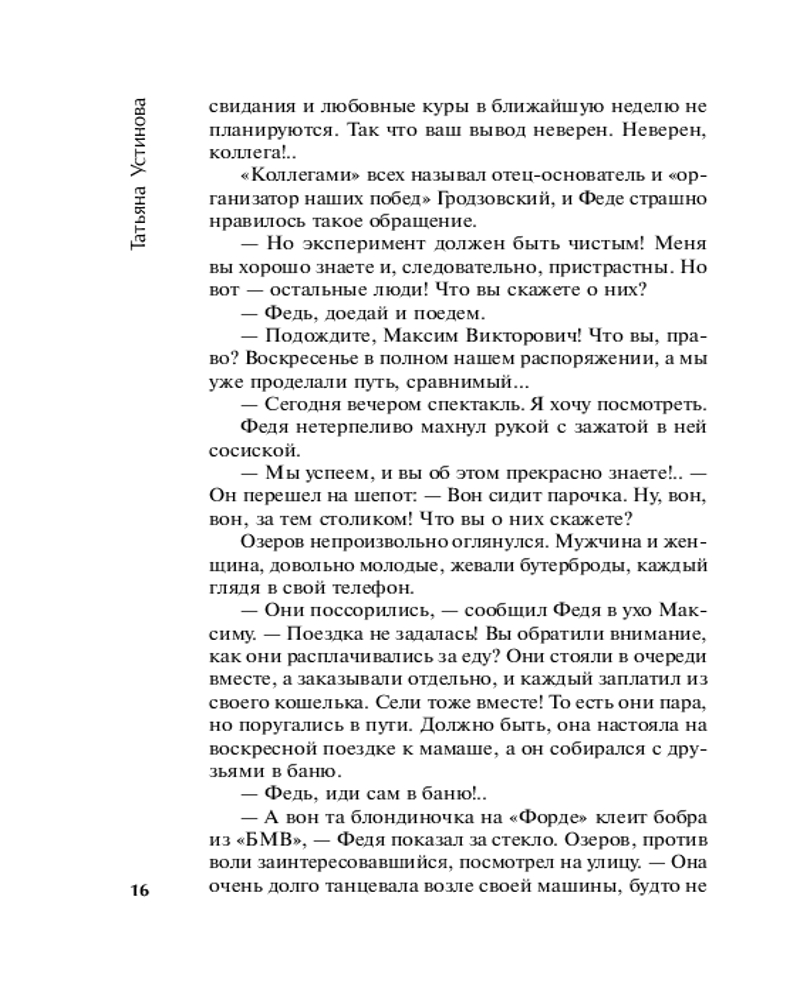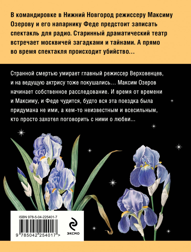 💳 Оплатить за товар можно при получении 🇰🇿 Есть бесплатная доставка по Казахстану от 1 дня 🎁 Копите бонусы с каждой покупки Серия: Татьяна Устинова: лучшее (обложка) В командировке в Нижний Новгород режиссеру Максиму Озерову и его напарнику Феде предстоит записать спектакль для радио. Старинный драматический театр встречает москвичей загадками и тайнами. А прямо во время спектакля происходит убийство... Странной смертью умирает главный режиссер Верховенцев, и на ведущую актрису тоже покушались... Максим Озеров начинает собственное расследование. И время от времени и Максиму, и Феде чудится, будто вся эта поездка была придумана не ими, а кем-то неизвестным и всесильным, кто просто захотел поговорить с ними о любви... |