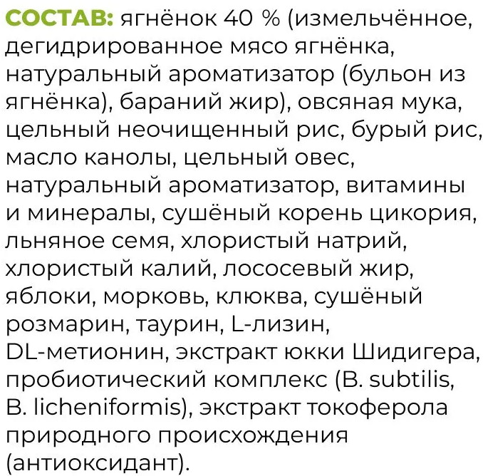Вкус: ягненок/овощи