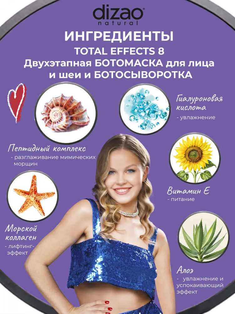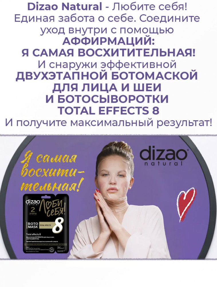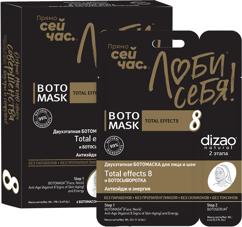 Dizao natural Набор ботомасок с сыворотками для лица и шеи «Total effects 8. Антиэйдж и энергия»