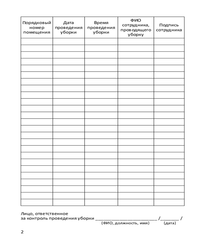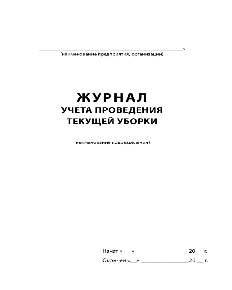 Журнал учёта проведения текущей уборки-20% +25