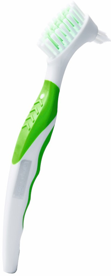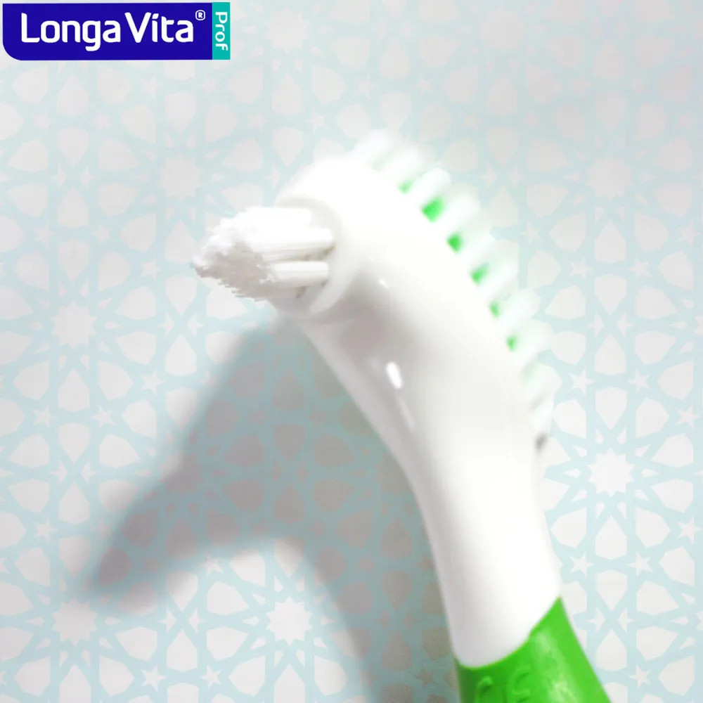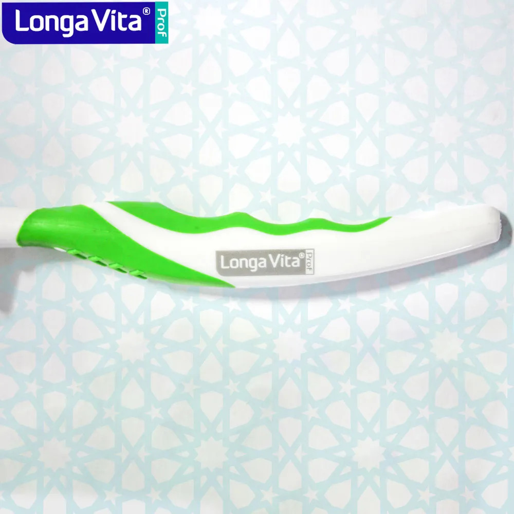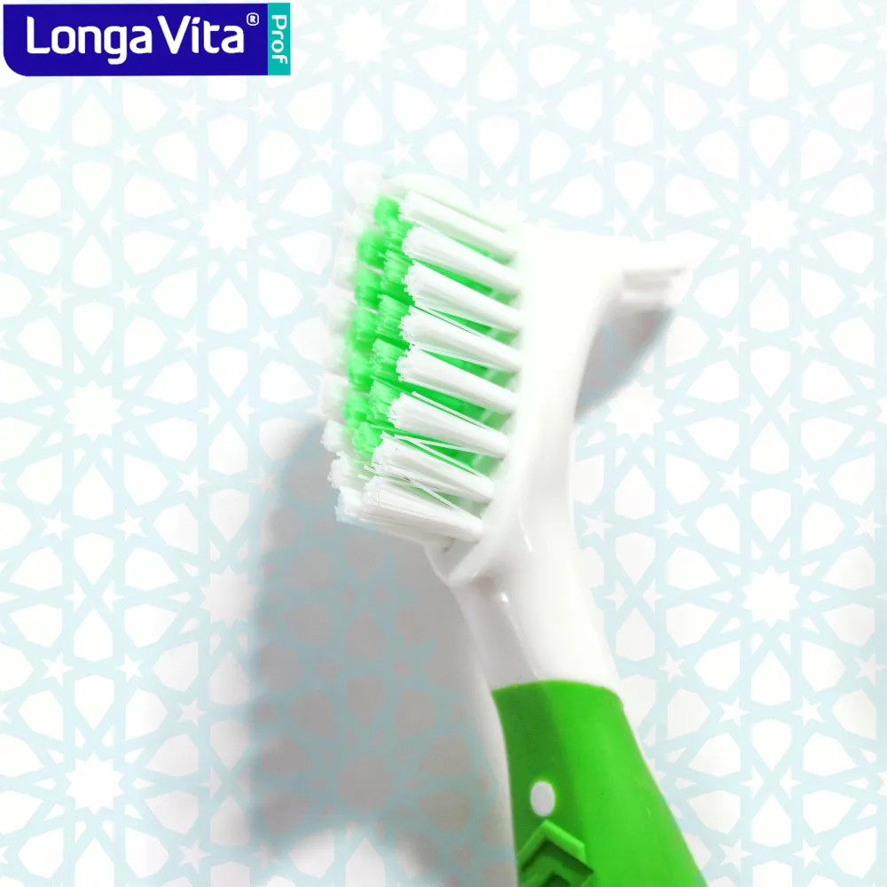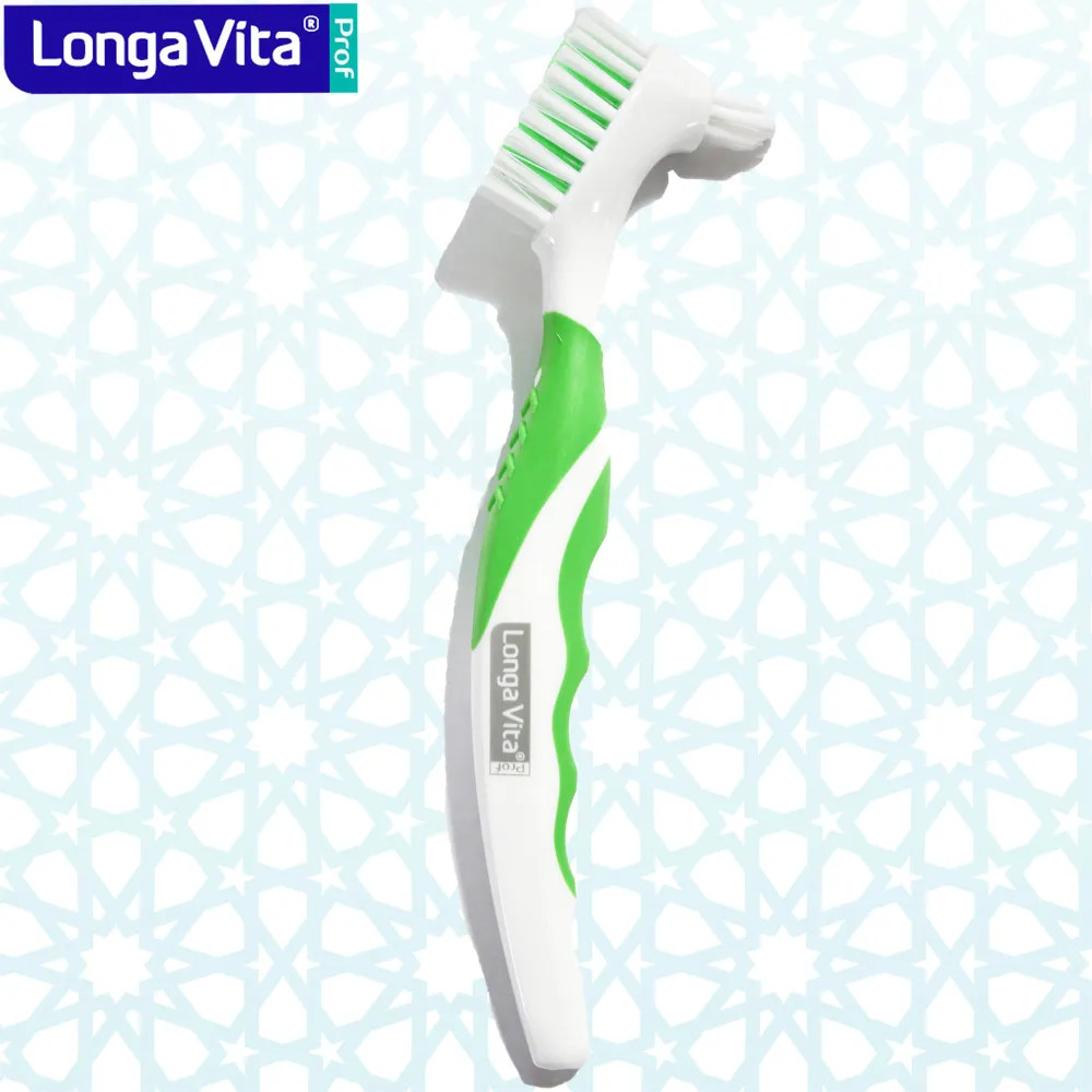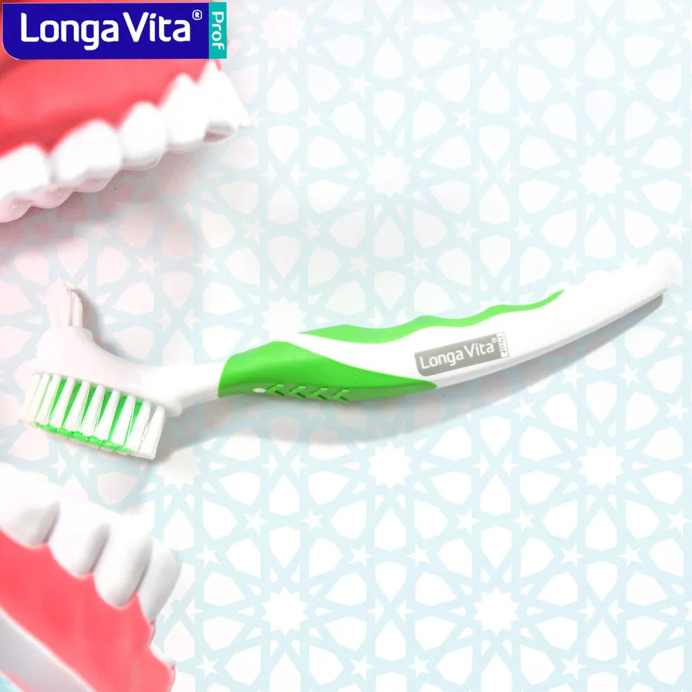 Зубная щетка Longa Vita Prof — это уникальный стоматологический инструмент, разработанный специально для чистки зубных протезов. Щетка оснащена жесткими щетинками TynexDupont с обеих сторон, что обеспечивает максимальную эффективность удаления зубного налета и частиц пищи с поверхности зубных протезов. На одной стороне щетки щетинки расположены плоско, что идеально подходит для чистки зубных протезов снаружи. На другой стороне щетинки расположены в виде клина, что позволяет легко добраться до труднодоступных мест на внутренней стороне зубных протезов. Зубная щетка имеет эргономичную прорезиненную ручку, обеспечивающую удобный захват даже во время продолжительных сеансов чистки. Благодаря широкой ручке его удобно держать даже тем, у кого артрит или другие заболевания рук. Независимо от того, используете ли вы щетку для чистки полных или частичных съемных протезов, эта зубная щетка обеспечивает комплексное решение для чистки, одновременно эффективное и простое в использовании.