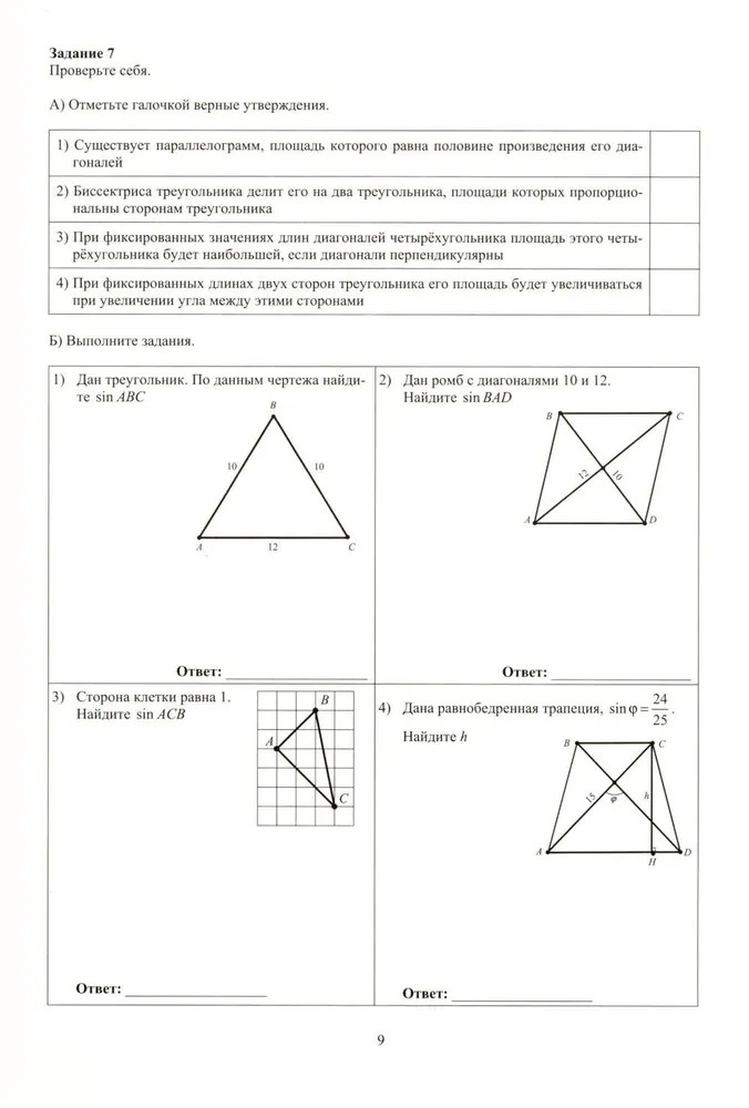 💳 Оплатить за товар можно при получении 🇰🇿 Есть бесплатная доставка по Казахстану от 1 дня 🎁 Копите бонусы с каждой покупки Тетрадь-тренажёр — это пособие для изучения геометрии в 9 классе по углублённой программе. Задания охватывают все основные темы углублённого курса, для удобства использования все задания представлены в виде таблиц. Выполнять решения можно непосредственно в тетради-тренажёре. Пособие ориентировано на последний ФГОС для углублённой программы с опорой на учебник «Геометрия: 7-9 классы» (Атанасян Л. С. и др.), включённый в Федеральный перечень учебников. Также возможно использование этих материалов с другими учебниками и учебными пособиями по геометрии 9 класса. |