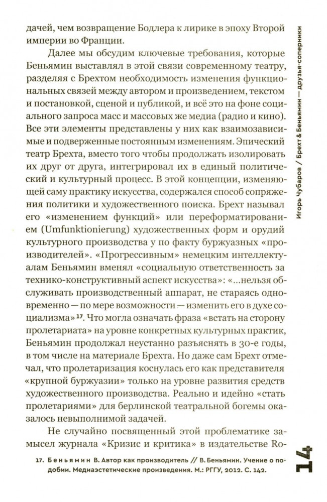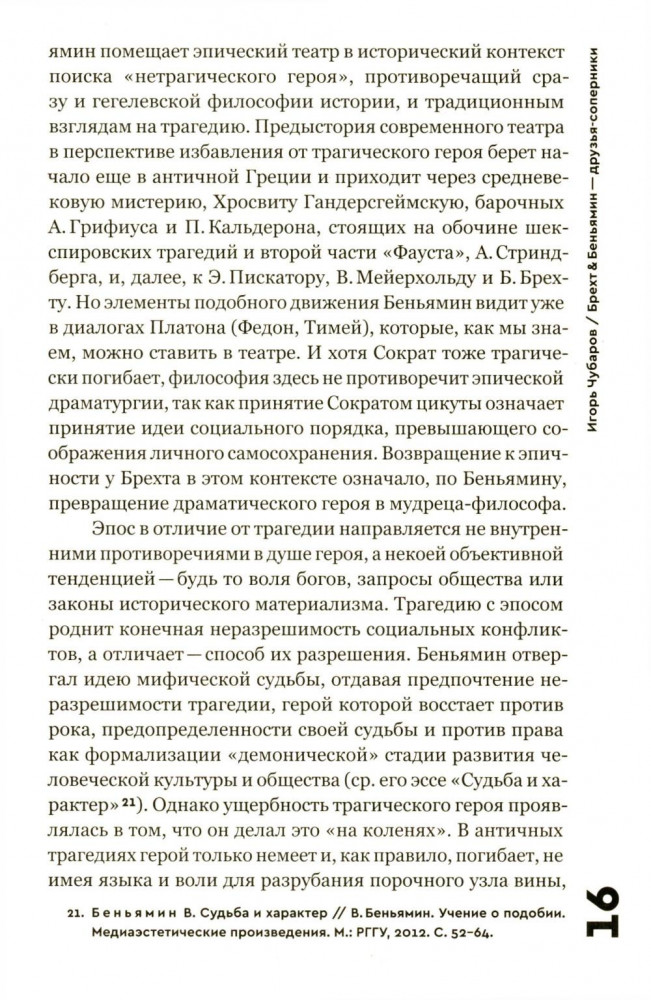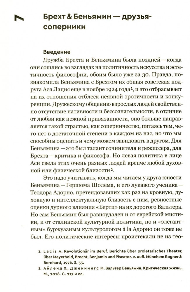 БрехтВ данный момент этот товар отсутствует в продаже. Возможно, у нас найдется аналогичный или похожий товар здесь. В ноябре 1924 года в Берлине философ и теолог Вальтер Беньямин знакомится с поэтом-атеистом Бертольтом Брехтом. Несмотря на «неклеящийся» разговор при первой встрече, спустя несколько лет их общение становится более тесным и перерастает в глубокую дружбу. В ходе непрестанного диалога они заимствуют и авторизуют идеи друг друга: брехтовскому принципу прерывания действия в эпическом театре Беньямин находит аналогию в собственной теории мышления образами (Denkbilder). По мнению Ханны Арендт, в лице Брехта и Беньямина «величайший из живущих немецких поэтов встретился с самым важным критиком своего времени». В настоящем издании собраны работы Беньямина, развивающие идеи Брехта о театре и искусстве, тексты, комментирующие его поэтические произведения, а также рецензия на «Трехгрошовый роман» и воспоминания о беседах с «Бертом». В разговоре с Теодором Адорно, уже после трагической гибели друга, Брехт признался, что считает Беньямина «своим лучшим критиком». |