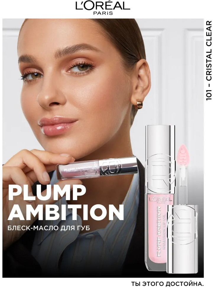 L'Oreal Paris Блеск-масло для губ «Plump Ambition», тон 101 Cristal clear
