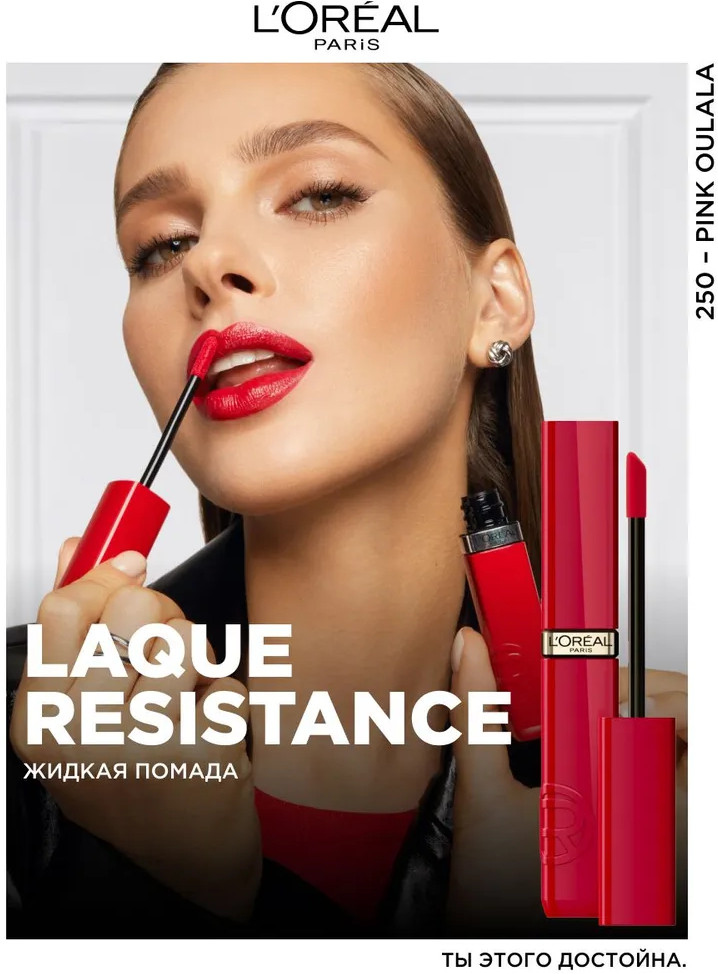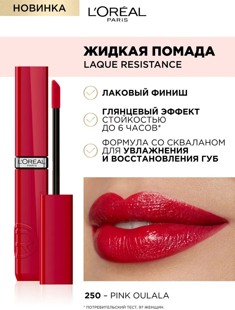 L'Oreal Paris Помада для губ жидкая «Laque Resistance», тон 250 Pink oulala