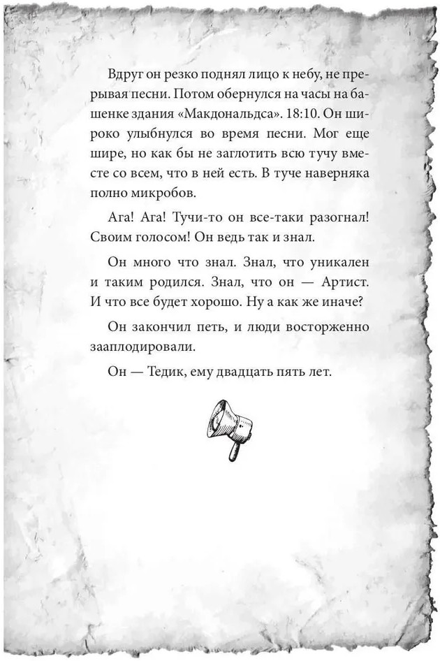💳 Оплатить за товар можно при получении 🇰🇿 Есть бесплатная доставка по Казахстану от 1 дня 🎁 Копите бонусы с каждой покупки Роман о взрослении и ответственности, о том, как построить мост будущего и спасти ближнего, но в этой самоотдаче не потерять себя. Тедику двадцать шесть, он уличный музыкант, дико талантливый, но — инфантильный. Ладе семнадцать, и она хочет помочь Тедику. Есть ли у них будущее — и общее, и своё? |