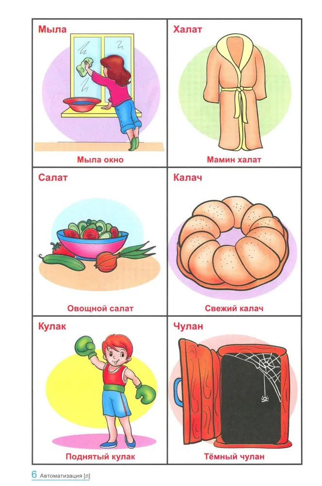 Серия: Предшкольная подготовка Дидактический материал предназначен для работы с детьми дошкольного и младшего школьного возраста, имеющими нарушения произношения сложных звуков. В данном альбоме представлен лексический материал для автоматизации произношения звуков [л] (с.3-38), [л’] (с. 39-62), [л]-[л’] (с. 63, 64). Алгоритм предъявления материала соответствует основным этапам логопедической работы: последовательное закрепление произношения звуков [л]-[л’] в начале, середине, конце слов, в словах со стечениями согласных, в словосочетаниях и чистоговорках. Дошкольники, не умеющие читать, повторяют слова и словосочетания за взрослым. Дети, владеющие чтением, самостоятельно читают подписи к рисункам в пособии. |