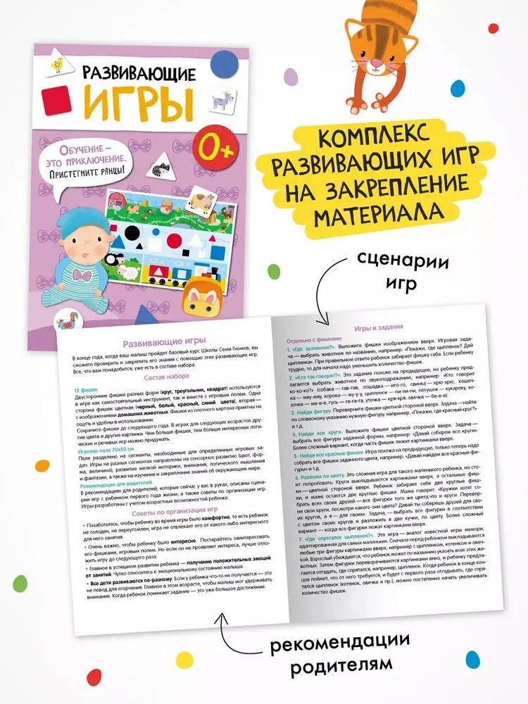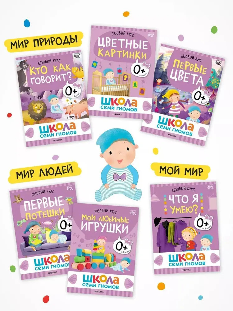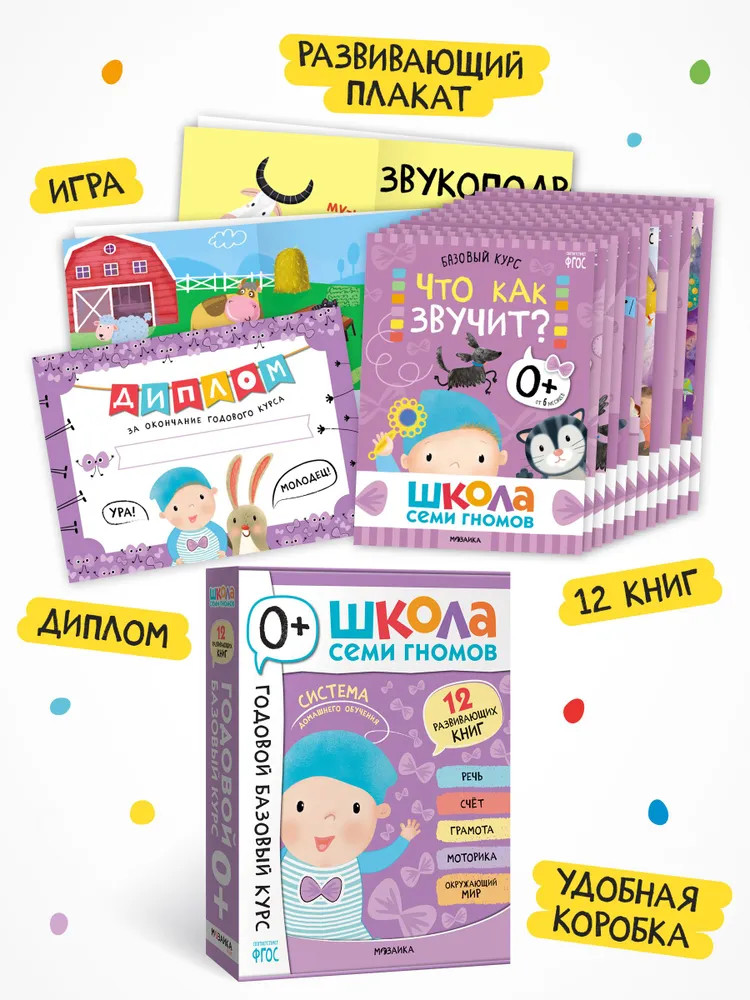 Школа Семи Гномов. Годовой базовый курс 0+. Комплект из 12 книгВ данный момент этот товар отсутствует в продаже. Возможно, у нас найдется аналогичный или похожий товар здесь. Серия: Школа Семи Гномов. Годовой базовый курс Комплект включает в себя книги «Что как звучит», «День и ночь», «Кто что делает?», «Квадратик и кружок», «Мелкая моторика», «Самая первая книжка», «Кто как говорит», «Цветные картинки», «Первые цвета», «Первые потешки», «Мои любимые игрушки», «Что я умею». Часть этих книжек направлена на развитие когнитивных способностей ребенка: познавательный интерес, умение думать, анализировать и делать выводы. Другая часть книжек посвящена окружающему миру и знакомит ребенка с природой и миром людей. Школа Семи Гномов — это система, а не набор книг. Она выстроена таким образом, чтобы ребёнок получил необходимые знания в правильный момент. Поэтому все книги в Школе Семи Гномов имеют четкую возрастную адресацию и разработаны строго с учетом возрастных возможностей ребенка. Но самое важное, чтобы занятия с ребенком давали результат и приносили радость. Поэтому все задания выстроены от простого к сложному и следуют принципу «развитие через игру». Заниматься с ребенком может любой взрослый, специальных знаний и опыта не требуется. Родительская страничка в каждой книге подскажет, что, как и почему нужно развивать в данном возрасте. А еще в Школе Семи Гномов очень сложно заблудиться, ведь каждому возрасту соответствует свой цвет и свой герой. В течение всего обучения ребенка сопровождают семь Гномов — персонажи, списанные с детей соответствующего возраста. Самых маленьких сопровождает фиолетовый цвет и гномик Бантик. Заниматься с грудным ребенком не только можно, но и нужно! Первый год жизни новорожденных — это фундамент формирования его личности. От рождения до года стремительно развиваются интеллект и эмоциональная сфера. Книжки в наборе разработаны специально для малышей от 0 до 1 года. |