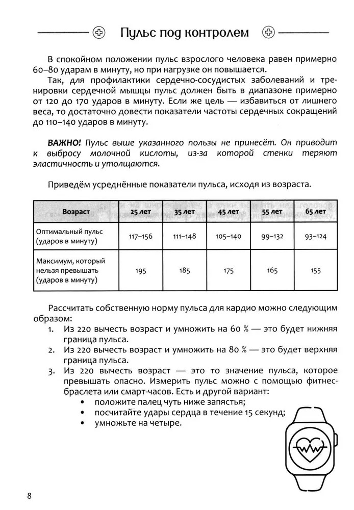 💳 Оплатить за товар можно при получении 🇰🇿 Есть бесплатная доставка по Казахстану от 1 дня 🎁 Копите бонусы с каждой покупки «Кардиодневник» — ваш персональный помощник на пути к здоровому сердцу и стройной фигуре! Этот дневник поможет систематизировать кардиотренировки: от записи личных и медицинских данных до контроля пульса и питания. Внутри вы найдете понятное объяснение пользы кардионагрузок для сердца, сосудов, дыхания и похудения, а также важные предупреждения о противопоказаниях. Узнайте, как правильно питаться до и после тренировок, выберите подходящий вид активности (бег, ходьба, плавание, домашние упражнения) из подробного списка. Практическая часть включает ТОП-10 эффективных домашних кардиоупражнений с описанием и готовый 30-дневный челлендж для постепенного прогресса. Отдельный раздел научит рассчитывать и контролировать безопасный пульс. |