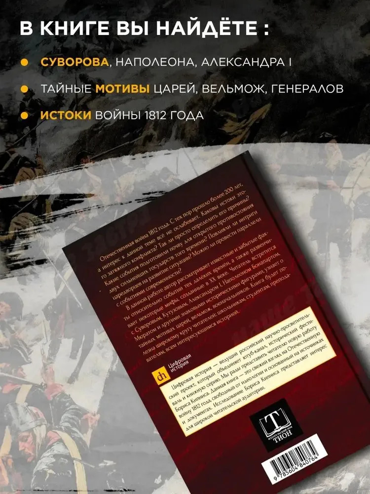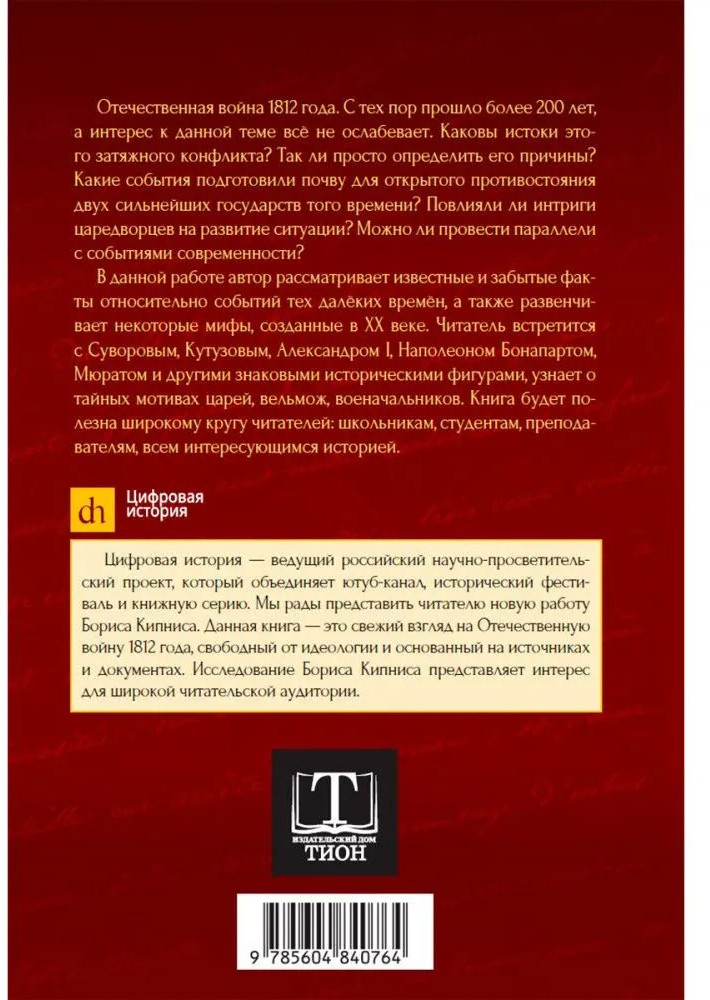 💳 Оплатить за товар можно при получении 🇰🇿 Есть бесплатная доставка по Казахстану от 1 дня 🎁 Копите бонусы с каждой покупки Отечественная война 1812 года. С тех пор прошло более 200 лет, а интерес к данной теме всё не ослабевает. Каковы истоки этого затяжного конфликта? Так ли просто определить его причины? Какие события подготовили почву для открытого противостояния двух сильнейших государств того времени? Повлияли ли интриги царедворцев на развитие ситуации? Можно ли провести параллели с событиями современности? |