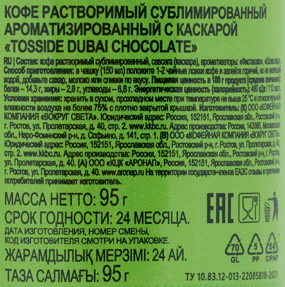 Tosside Кофе растворимый с ароматом фисташки и шоколада «Dubai Chocolate»