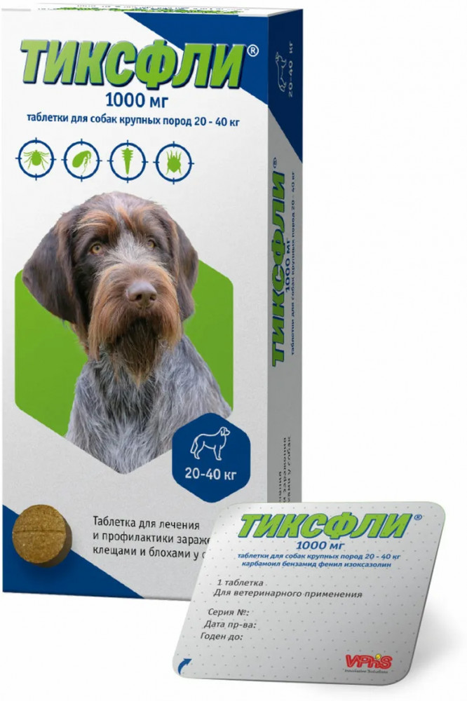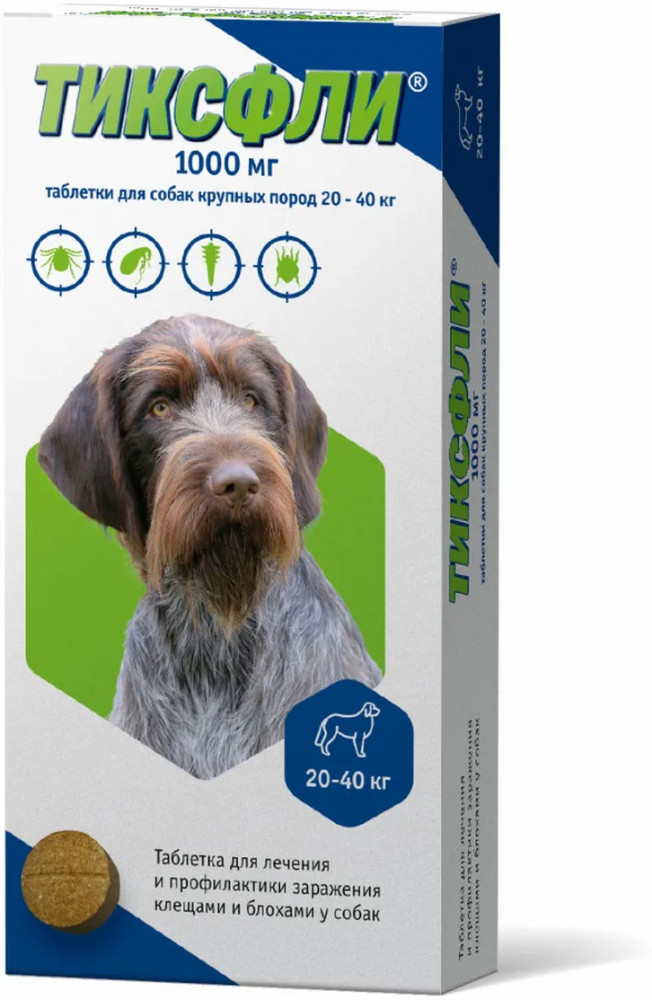 | Тиксфли Таблетка от блох и клещей для собак 20-40 кг+843 (бонуса)