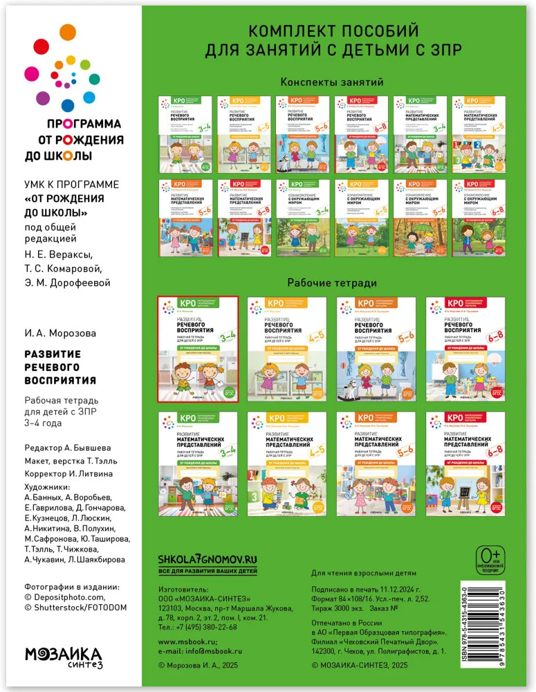 Развитие речевого восприятия. 3-4 года. Рабочая тетрадь для детей с ЗПР-25% +22