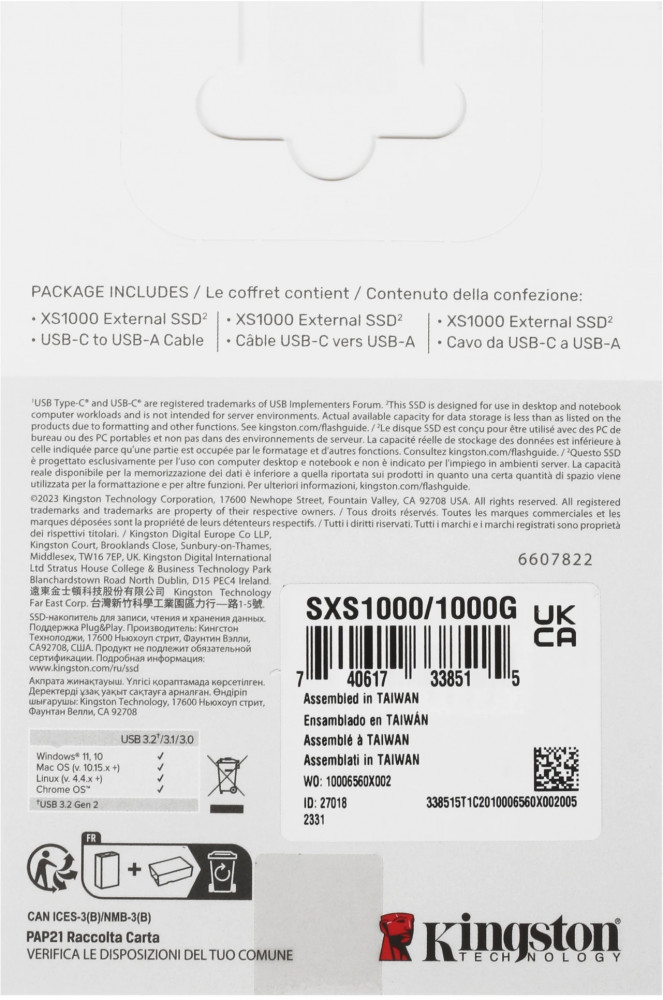 ® и USB Type-A с помощью прилагаемого кабеля и адаптера обеспечивает удобство и впечатляющие возможности хранения. XS1000 станет вашим надежным спутником для беспроблемного резервного копирования файлов, важные документы, видео и фотоальбомы, мультимедийные файлы всегда будут под рукой. Распрощайтесь с громоздкими устройствами и поприветствуйте оптимизированную эффективность хранения данных на внешнем твердотельном накопителе XS1000. Доступен в чёрном или красном цвете с опциональными резиновыми чехлами, которые продаются отдельно.